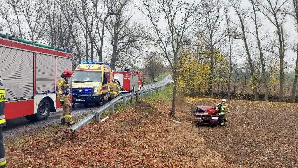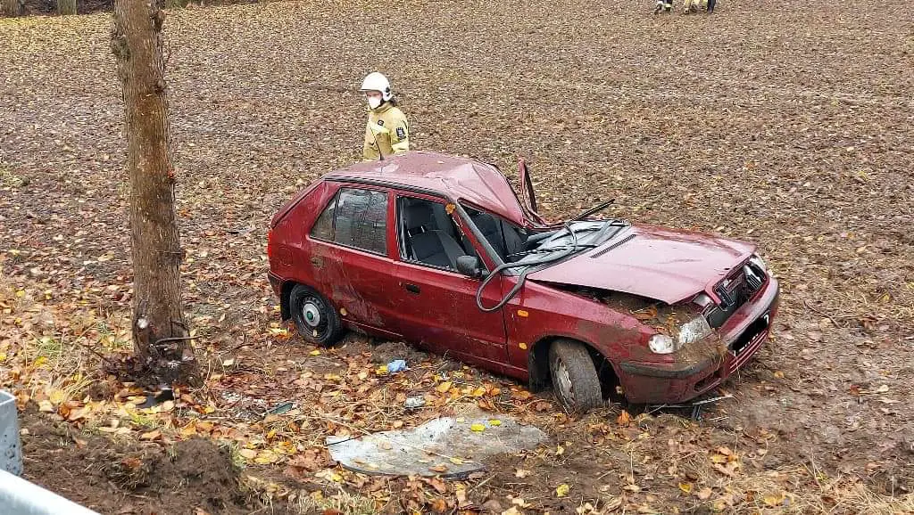 Do zdarzenia doszło 16 listopada chwilę przed godziną 12. Jak wynika z nieoficjalnych informacji kierujący samochodem marki Skoda Felicja jadąc od strony Kłecka w kierunku Gniezna, tuż przed Działyniem na łuku drogi wypadł z jezdni, po czym uderzył w drzewo i zatrzymał się na polu.