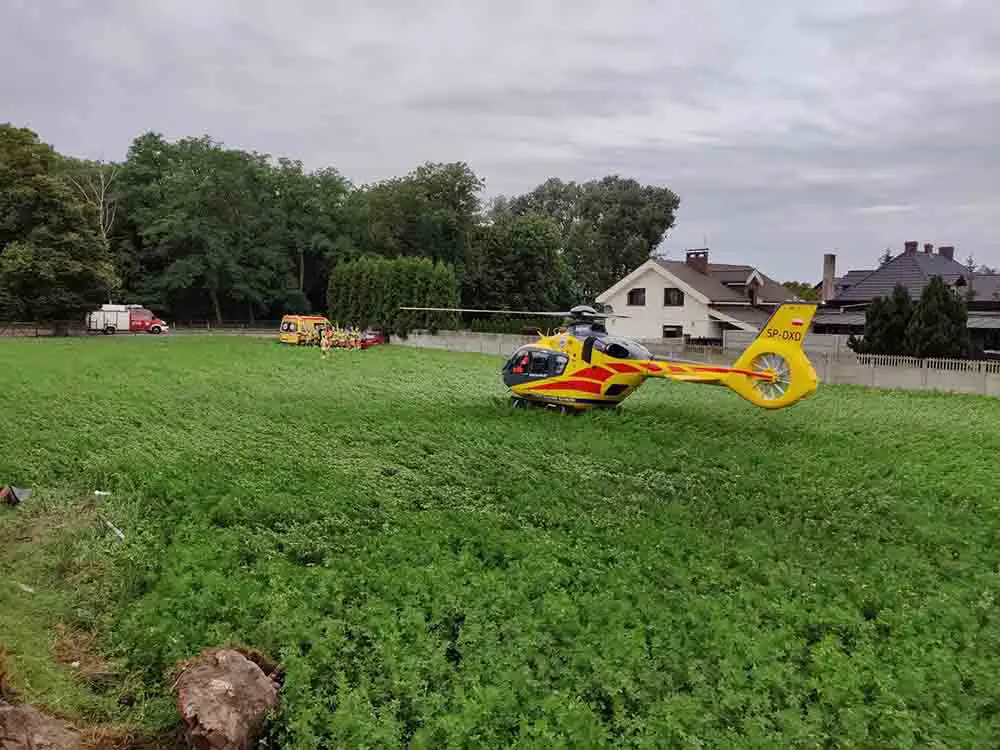 Kierujący osobówką wypadł z drogi, rozerwał ogrodzenie i zatrzymał się daleko w polu tuż przy zabudowaniach. Na miejsce wypadku szybko dotarły służby ratunkowe. Strażacy JRG Śrem zajęli się kierowcą. Na miejscu zdarzenia wylądował również śmigłowiec lotniczego pogotowia ratunkowego. Kierowca był reanimowany na miejscu przez 40 minuty. Śmigłowcem został zabrany do szpitala w Kaliszu.