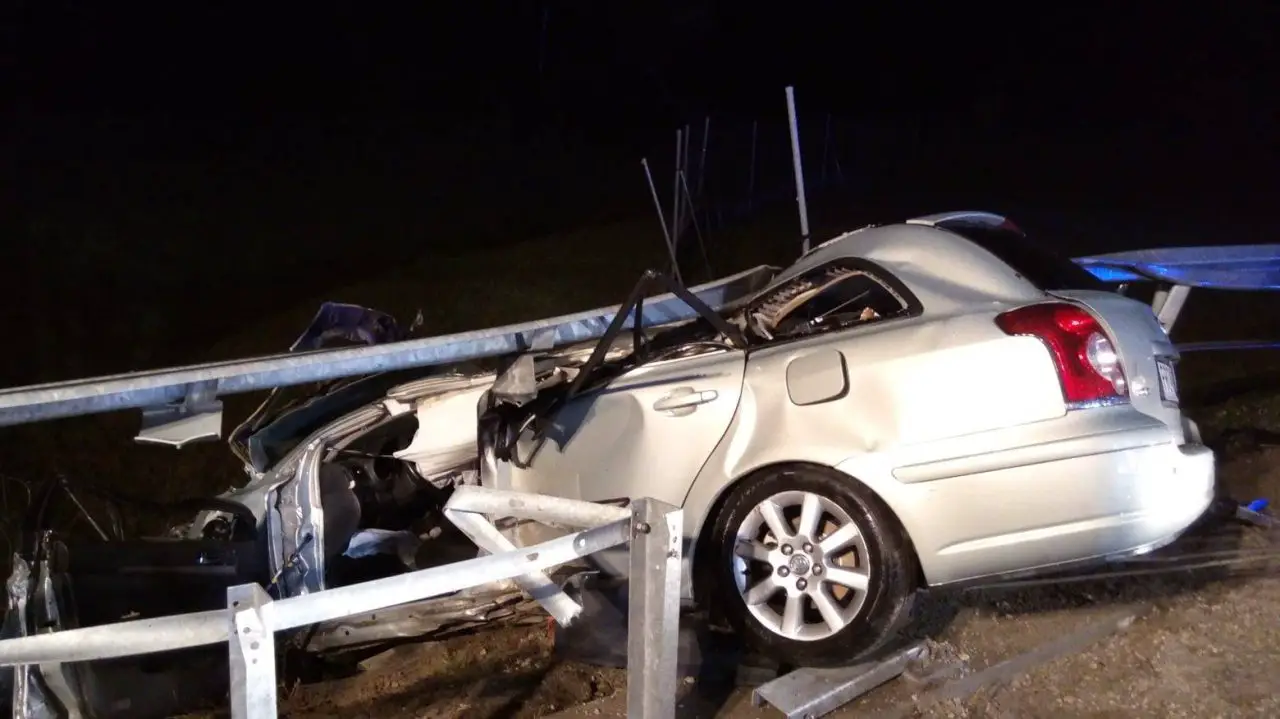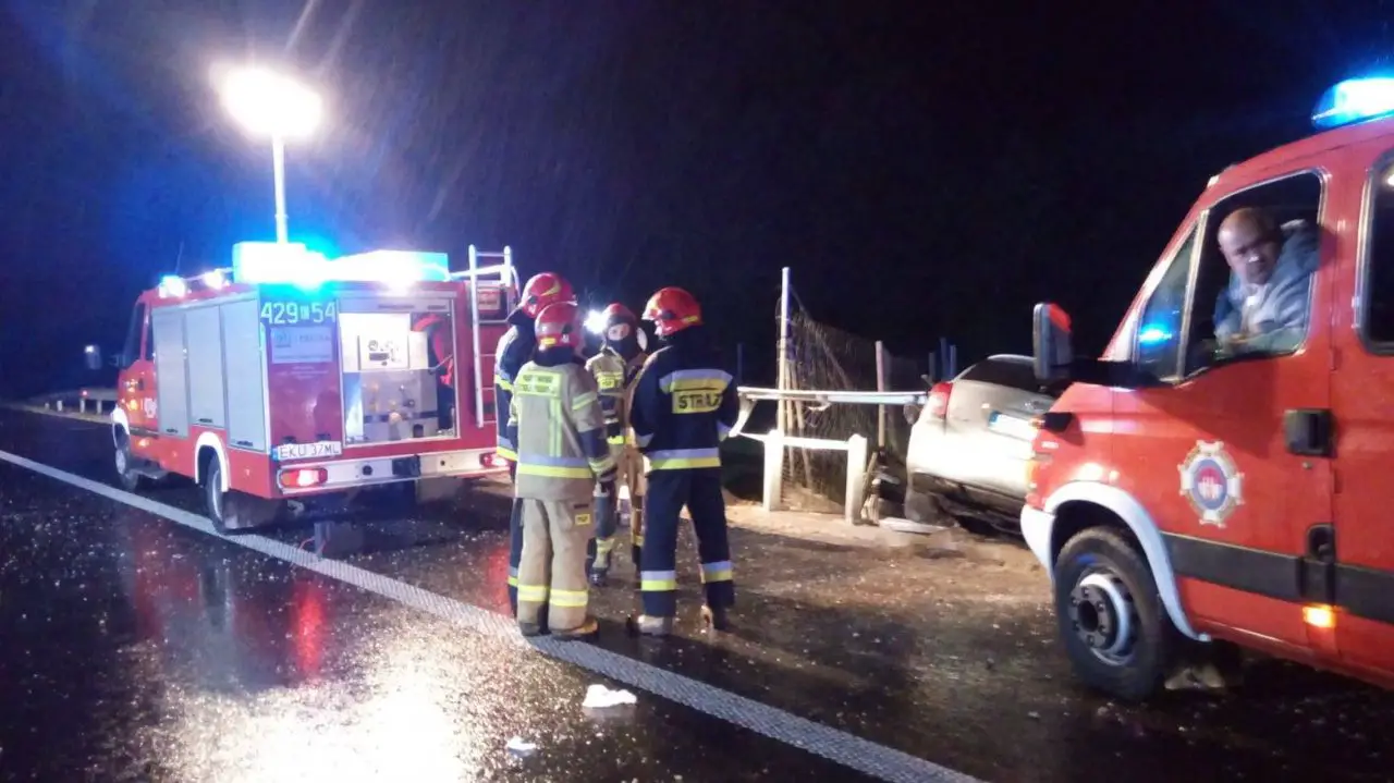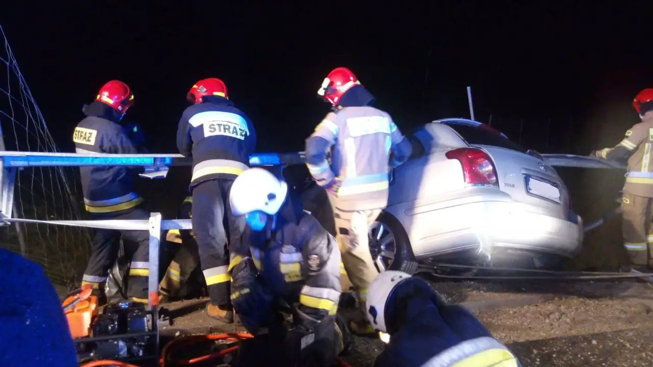 Do poważnego wypadku doszło po północy. Kierujący toyotą wypadł z drogi i z dużą prędkością wbił się w bariery ochronne. O sile uderzenia świadczy fakt, że bariery ochronne zostały rozerwane, a część z nich wbiła się do samochodu.