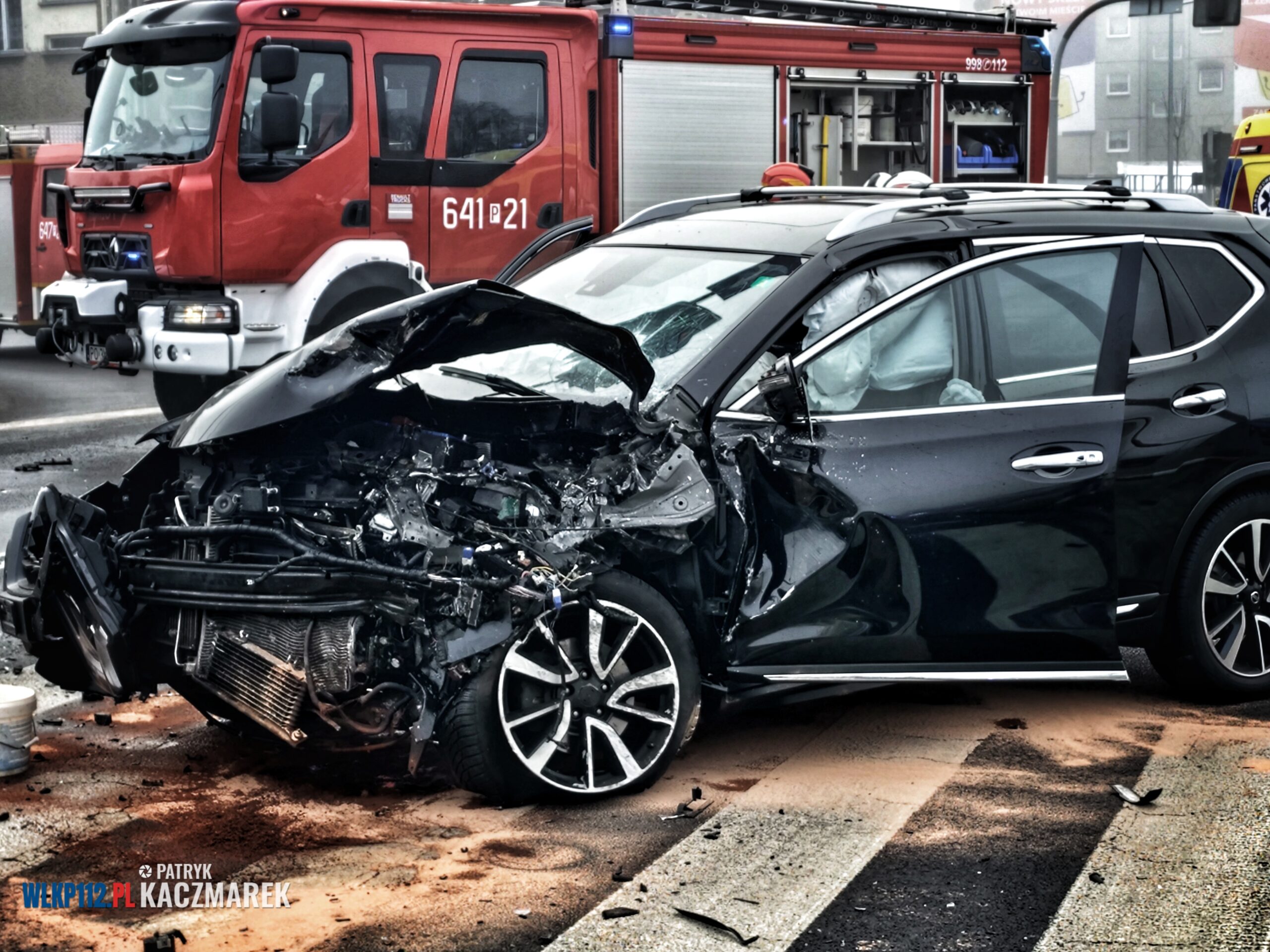 Po dojeździe na miejsce strażacy zastali dwa samochody jeden z rozbitym przodem, drugi natomiast leżał na boku, a w środku została uwięziona jedna osoba. Strażacy natychmiast za pomocą specjalistycznego sprzętu hydraulicznego wykonali dostęp do uwięzionej osoby. Po jego wydobyciu przekazano go załodze pogotowia ratunkowego.