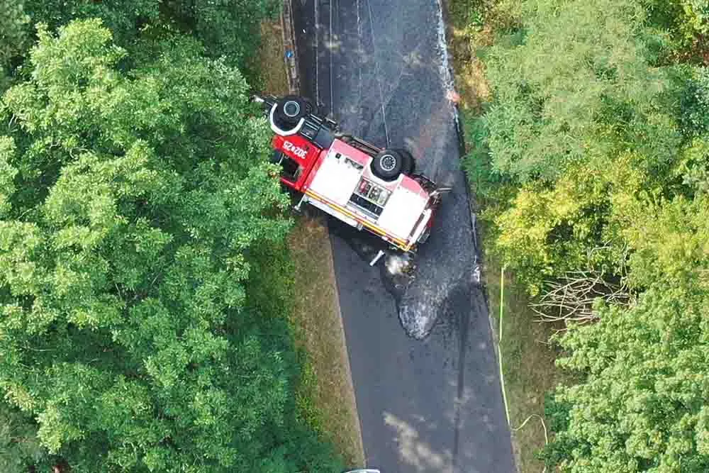 Samochód bojowy JRG2 z Gorzowa jechał do pożaru. Do wypadku drodze z Bogdańca do Stanowic. Wóz strażacko wpadł w poślizg i przewrócił się na bok. Na miejsce wypadku szybko dotarły służby ratunkowe. Na miejsce dojechały cztery wozy straży pożarnej, w tym są też druhowie OSP Bogdaniec.