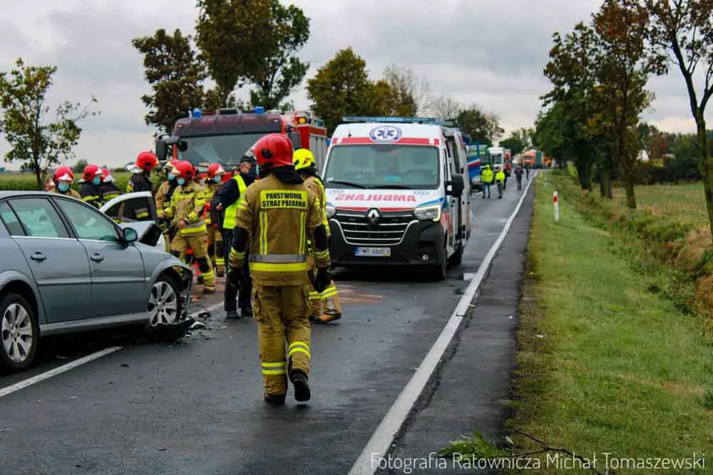 Ze wstępnych ustaleń policji wynika, że kierujący oplem jadąc w kierunku Wrześni, na łuku drogi wpadł w poślizg i uderzył w przyczepkę jadącego od strony Wrześni audi. Obił si odbił się od przyczepki i zderzył się czołowo z renault. Na miejsce wypadku dojechały wozy straży pożarnej, karetki pogotowia ratunkowego i policja. Wylądował też lotniczego pogotowia ratunkowego.
