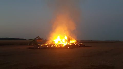 Kiedy na miejsce pożaru dojechały jednostki straży pożarnej baloty były już całe w płomieniach. To duży pożar. Spłonęło zebranych na polu 300 balotów słomy. Z ogniem walczyli strażacy OSP Strykowo oraz OSP Stęszew. Łącznie trzy zastępy. Baloty z pewnością zostały podpalone. Przyczynę oraz sprawcę pożaru będą ustalać policjanci.