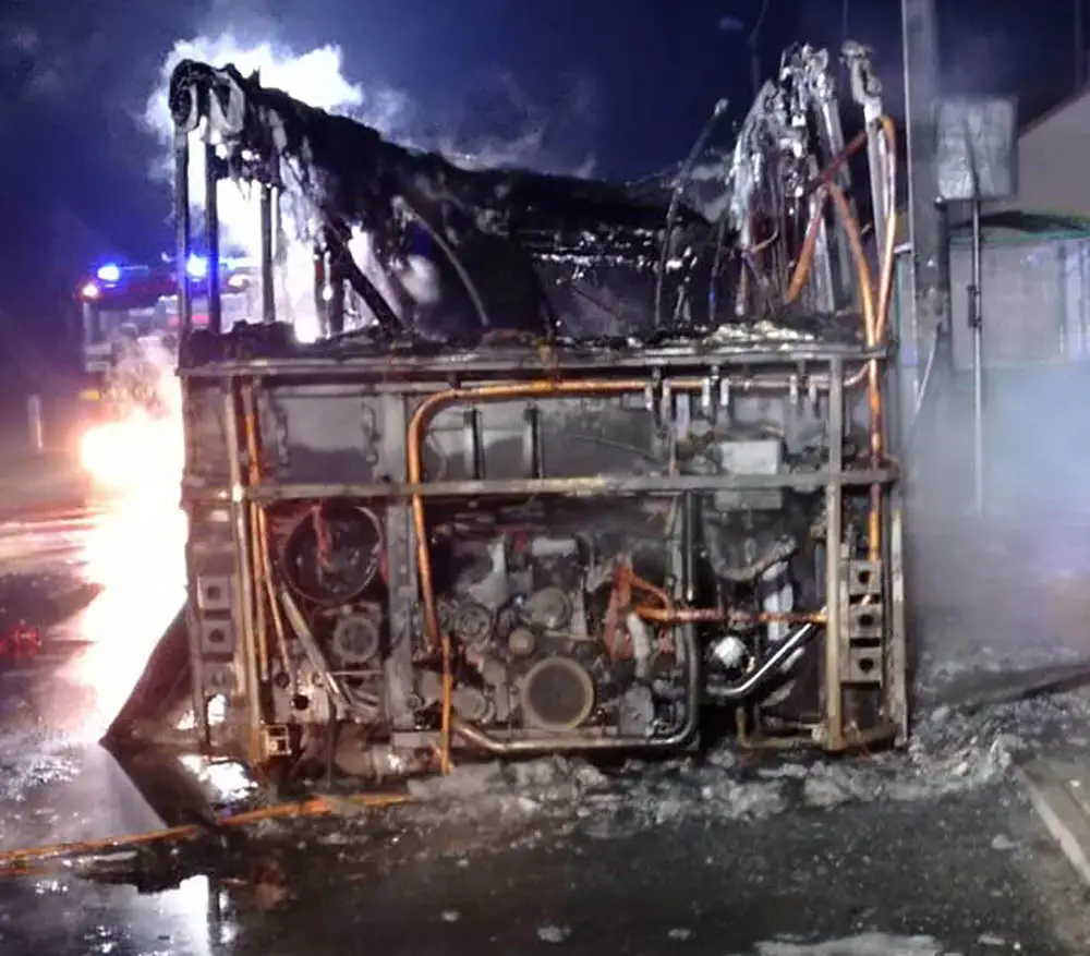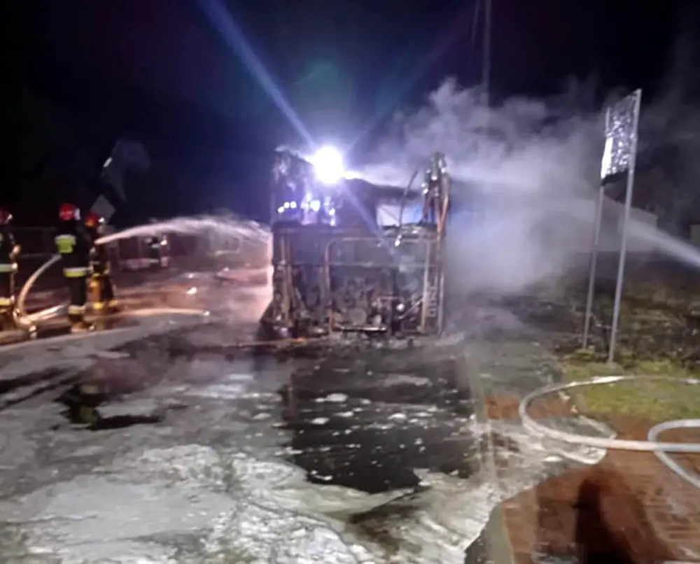 Strażacy szybko opanowali pożar. Niestety autobus spłonął niemal całkowicie.