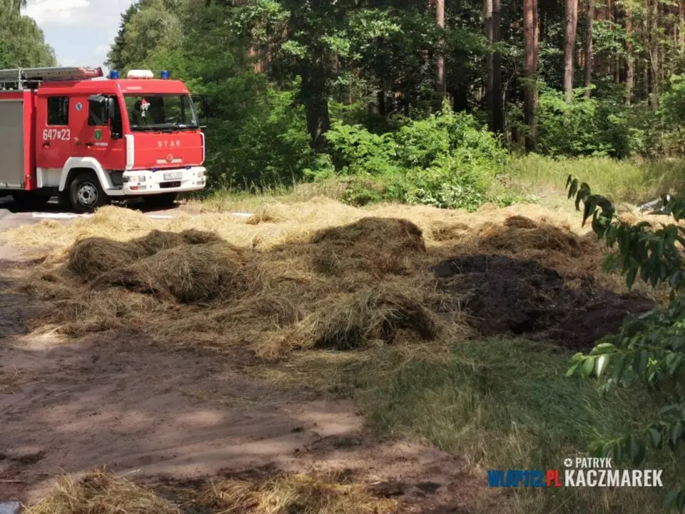 JJak udało nam się dowiedzieć, kierowca ciągnika rolniczego w porę zareagował i natychmiast rozwalił baloty na pobocze, po czym strażacy za pomocą prądów wody ugasili pożar. Spaleniu uległa częściowo również naczepa, na której znajdowały się baloty.