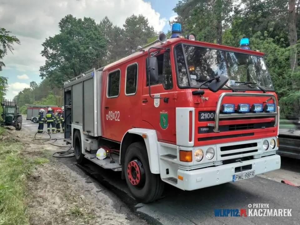 Po dojedzie na miejsce potwierdzono zgłoszenie. Jak mówił nam z miejsca pożaru Kierujący Działaniami Ratowniczymi kpt. inż. Marcin Mocek – W chwili wybuchu pożaru na przyczepie znajdowało się około ośmiu balotów słomy. Pożar wybuch od iskry z traktora.