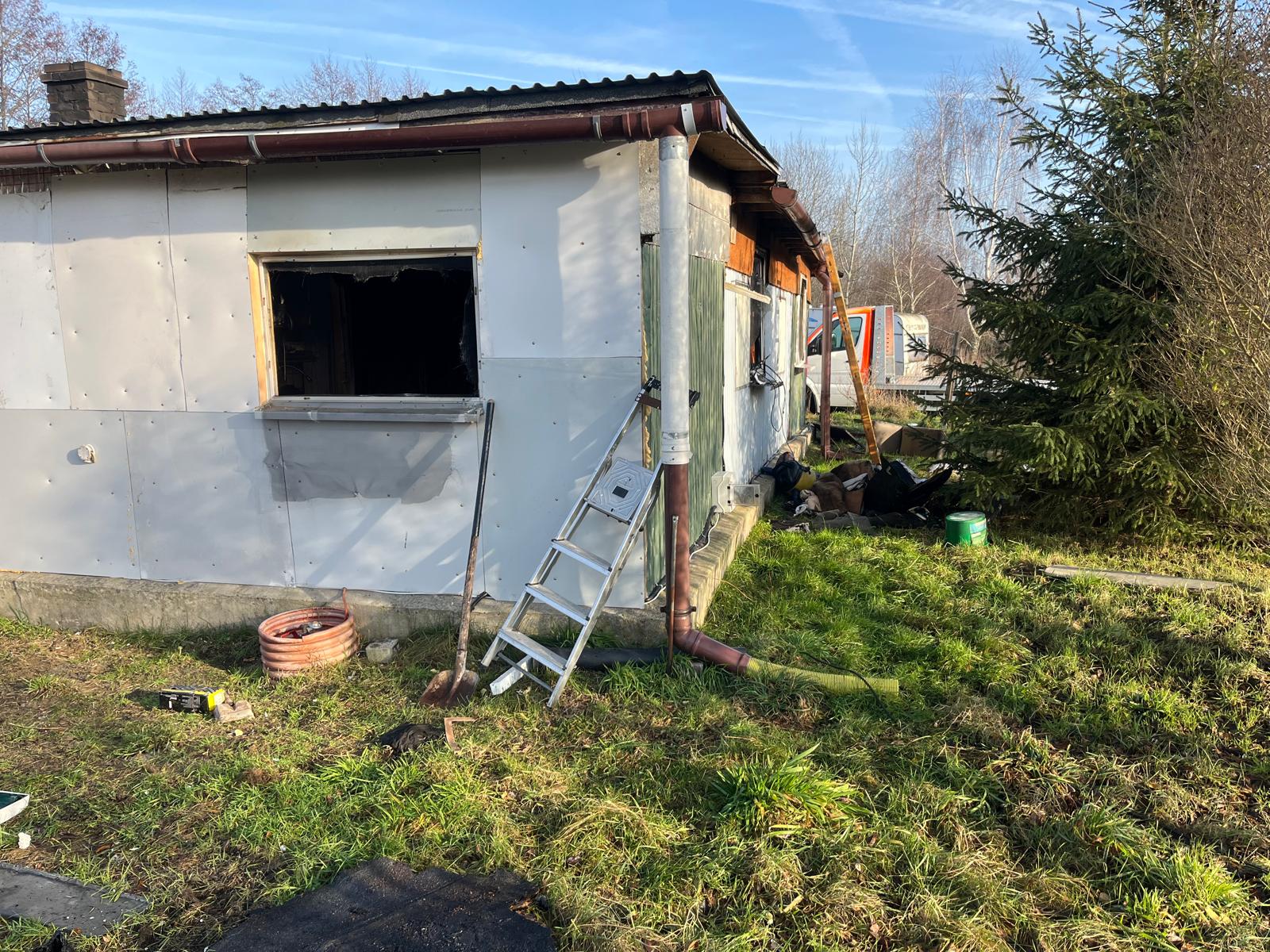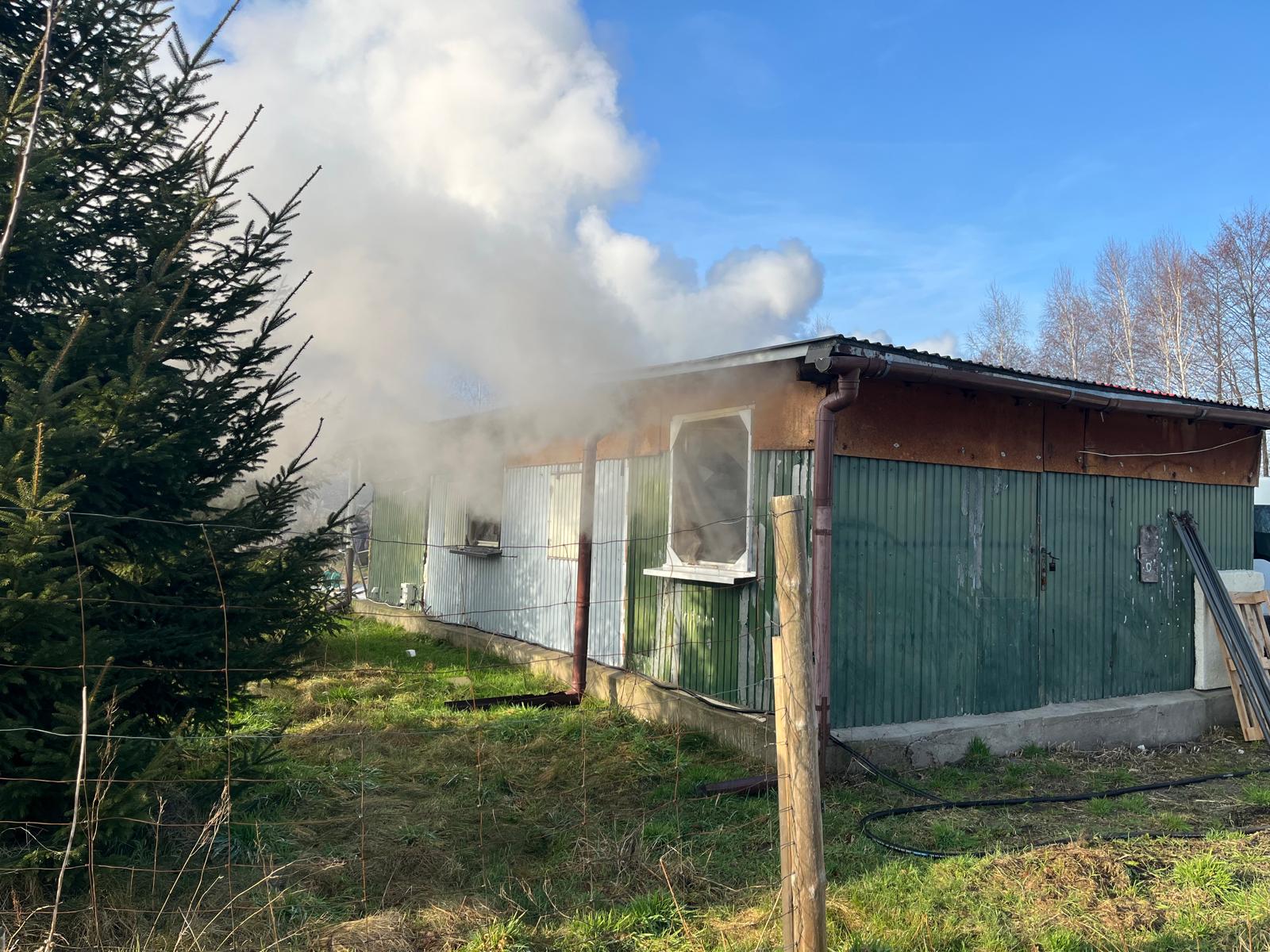 Działania strażaków w pierwszej fazie działań polegały na podaniu trzech prądów wody, dwa w natarciu na pożar oraz jeden w obronie na sąsiadujący budynek gospodarczy. Jednocześnie z działaniami gaśniczymi została wprowadzona rota ratowników do środka baraku w celu przeszukania pomieszczeń pod kątem przebywania osób. Podczas działań wewnątrz obiektu, strażacy wynieśli butle gazową 11 kg, po czym podali ja procesowi schładzania i monitorowaniu jej stanu przy pomocy kamery termowizyjnej.