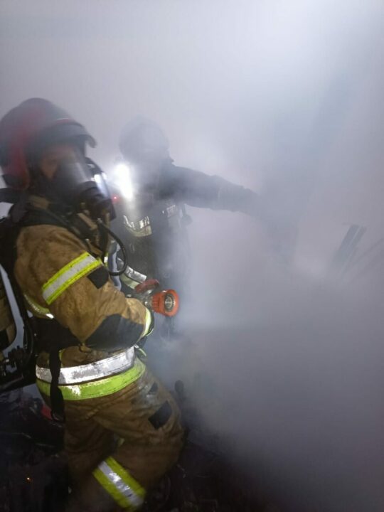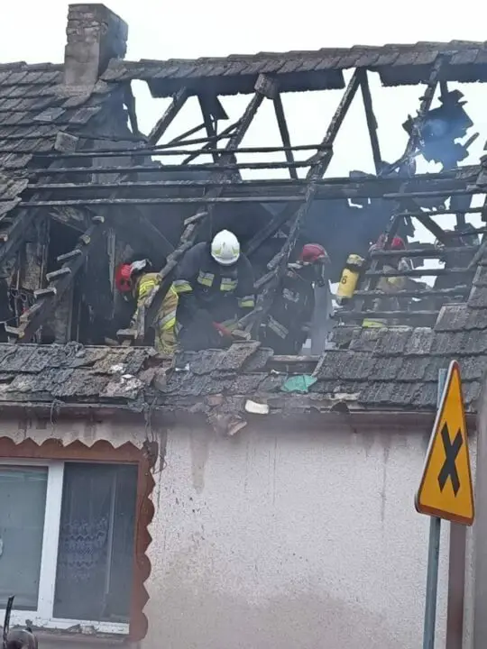 Na miejsce zdarzenia udała się także grupa operacyjna Komendanta Powiatowego w Czarnkowie. Po dojeździe na miejsce zdarzenia pierwszego zastępu zastano rozwinięty pożar poddasza. Działania zastępów polegały na zabezpieczeniu miejsca zdarzenia, wejściu ratowników zabezpieczonych w sprzęt ochrony układu oddechowego do środka budynku w celu lokalizacji źródła pożaru oraz jego ugaszeniu. Intensywny rozwój pożaru oraz silne zadymienie znacznie utrudniały działania ratowników. Po ugaszeniu pożaru przystąpiono do rozbiórki konstrukcji dachowej przy użyciu sprzętu burzącego. Spalone składowane na poddaszu materiały zostały wyrzucone na zewnątrz oraz dogaszone. Końcowe działania polegały na sprawdzeniu rozkładu temperatur oraz stanu atmosfery gazowej wewnątrz pomieszczeń objętych pożarem. W działaniach gaśniczych, które trwały niemal 3 godziny udział brało 34 strażaków Państwowej i Ochotniczych Straży Pożarnych.