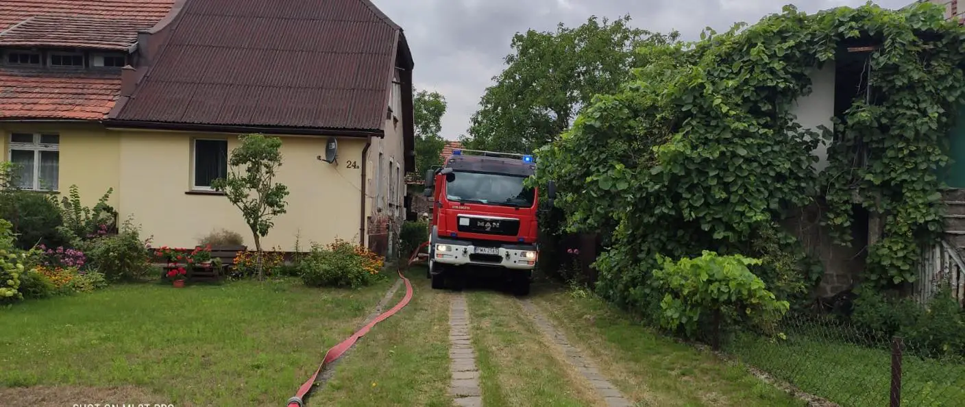 Pierwsze zastępy, który dotarły na miejsce potwierdziły, że pożarem objęty jest budynek gospodarczy oraz przekazały informacje, że zagrożona jest pobliska stodoła w zabudowie zwartej. Osób poszkodowanych brak.