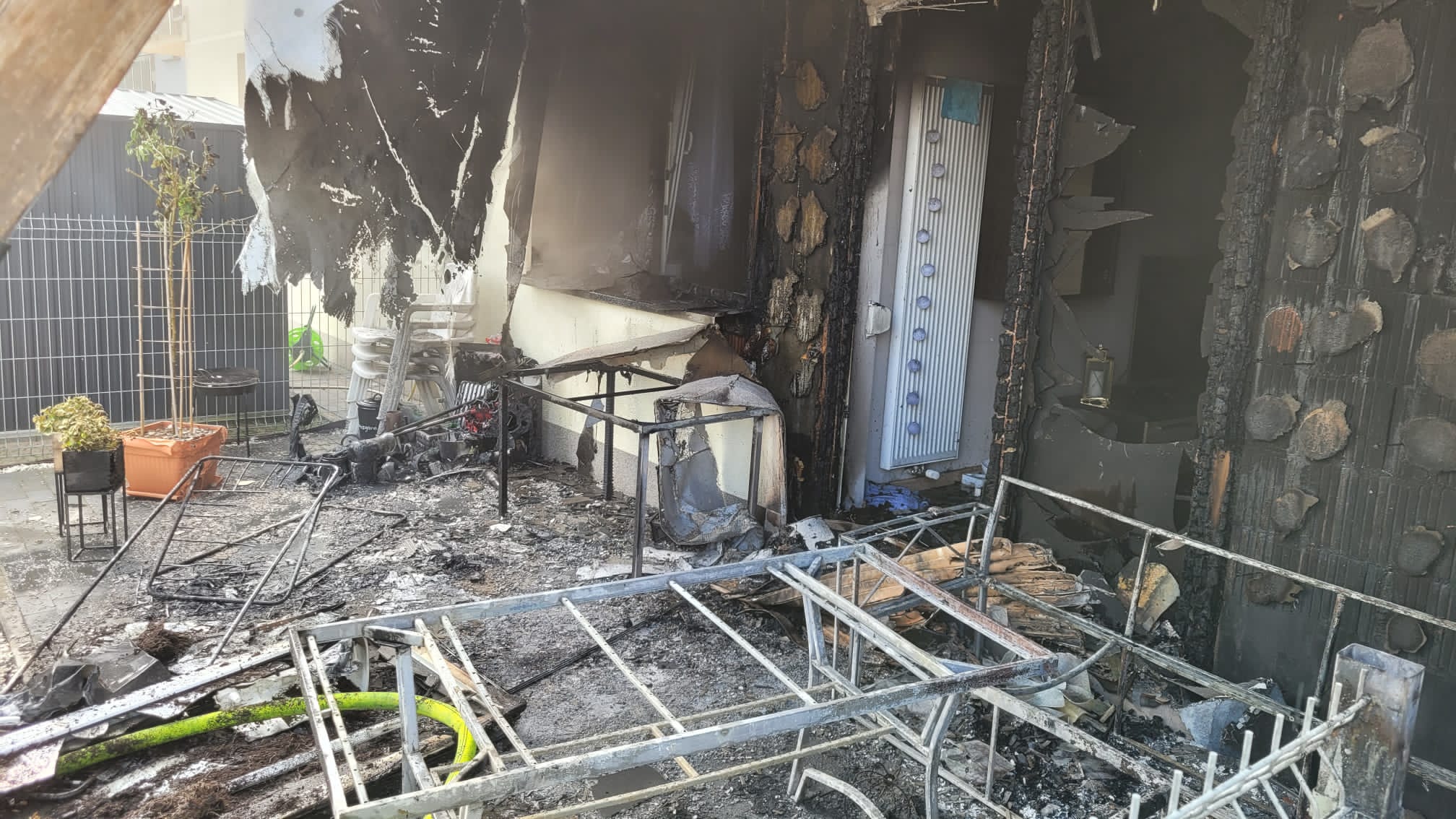 i podaniu jednego prądu wody na palące się meble ogrodowe, elewację budynku oraz stolarkę okienną. Następnie po ugaszeniu pożaru przy użyciu urządzeń pomiarowych sprawdzono miejsce pożaru i budynek. Z mieszkania na parterze wyciągnięto kota, którego przekazano pracownikowi schroniska dla zwierząt.