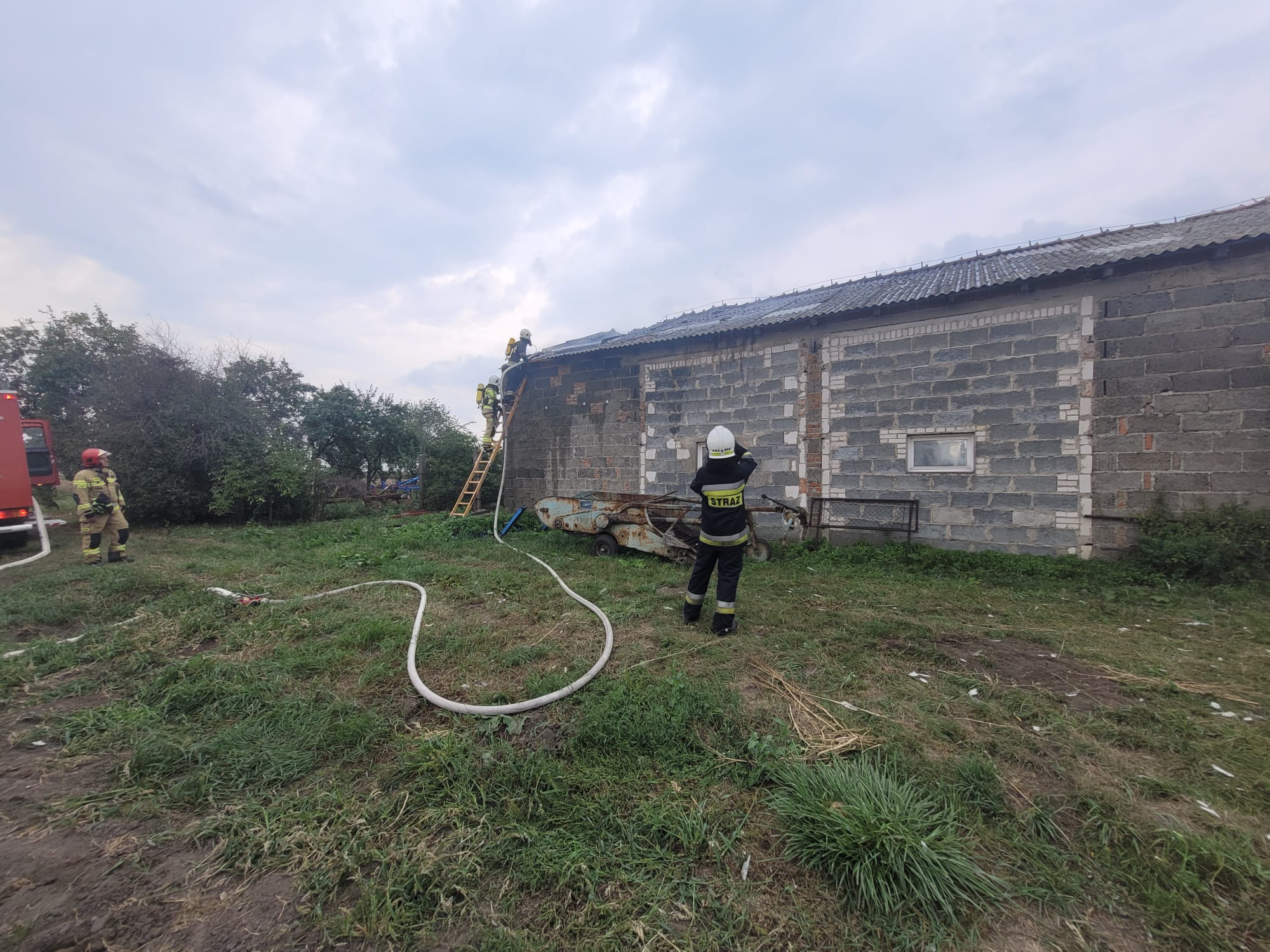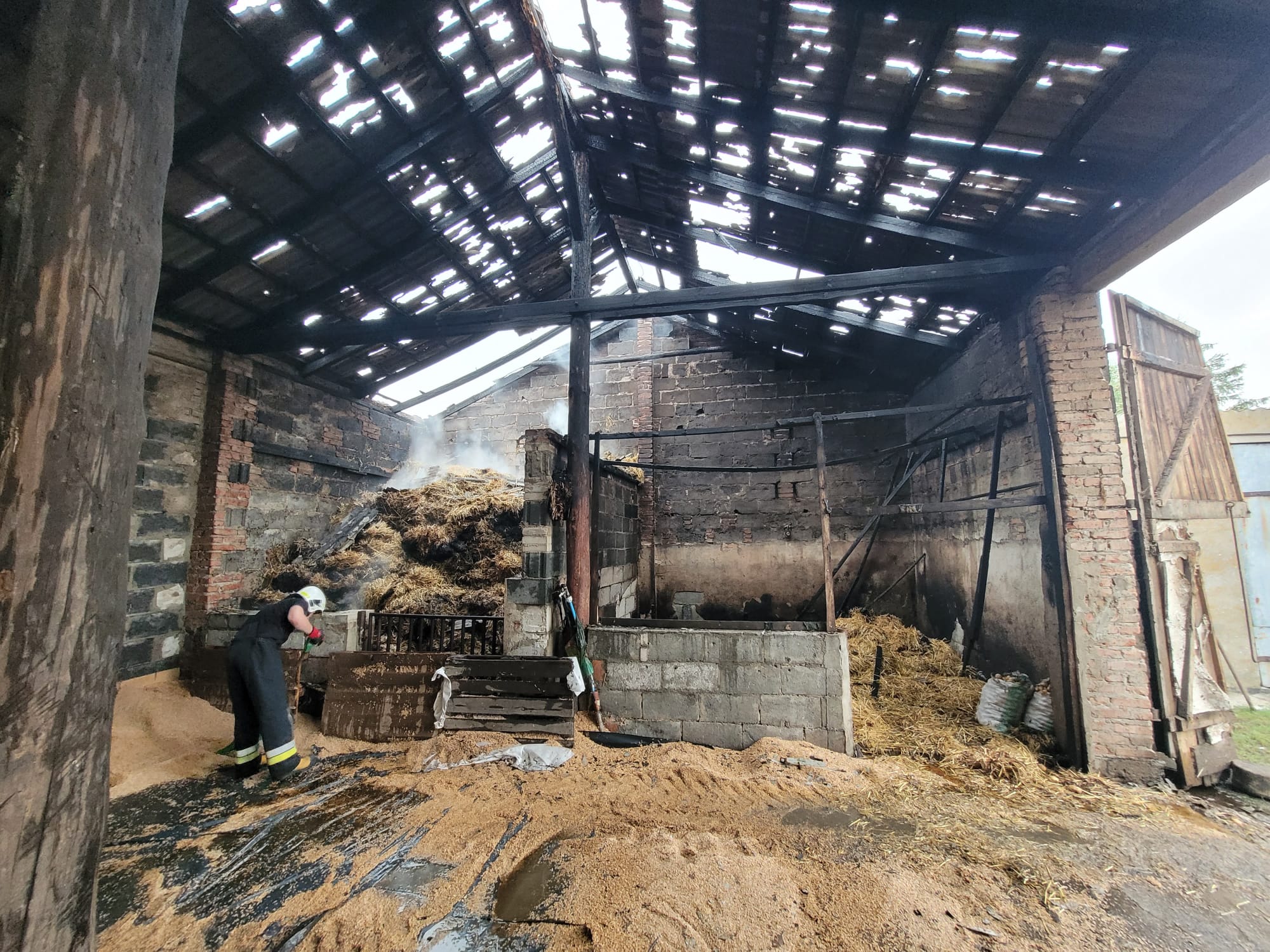 W wyniku pożaru spaleniu uległo około 12m3 słomy uszkodzony został również dach budynku.