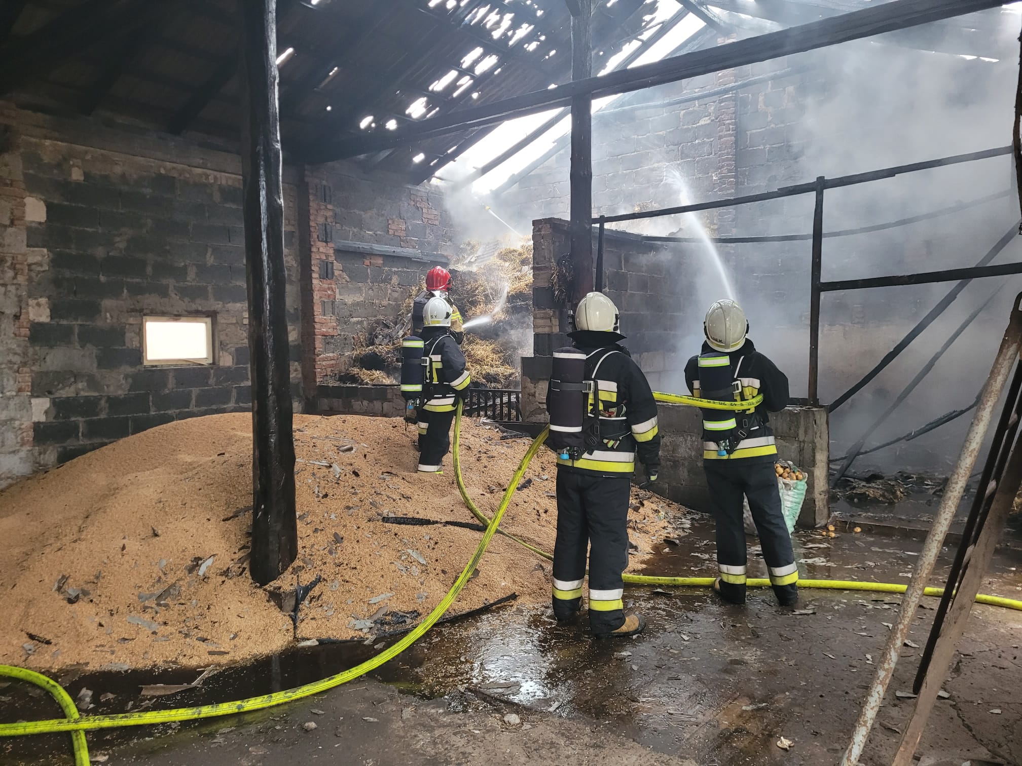 Działania Straży Pożarnej polegały na zabezpieczeniu miejsca zdarzenia oraz podaniu jednego prądu wody w natarciu na palącą się konstrukcję dachu oraz drugiego prądu do środka obiektu na palącą się słomę. Ze względu na duże zadymienie strażacy zabezpieczeni byli w aparaty ochrony dróg oddechowych. Dalsze działania strażaków polegały na usunięciu z budynku tlącej się słomy i dogaszanie jej na zewnątrz.
