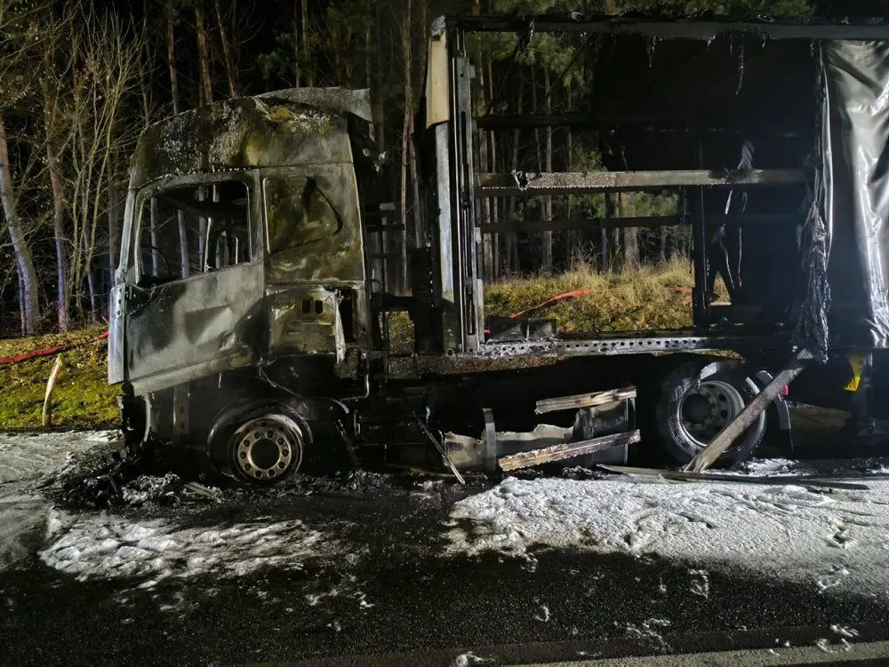 Kiedy strażacy dojechali na miejsce cała ciężarówka była już w ogniu. Kierowca wysiadł z kabiny przed rozwinięciem się pożaru. Nikomu nic się nie stało. Mimo szybkiej akcji ciężarówka niestety spłonęła doszczętnie.