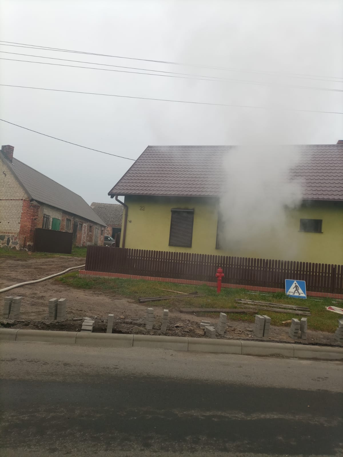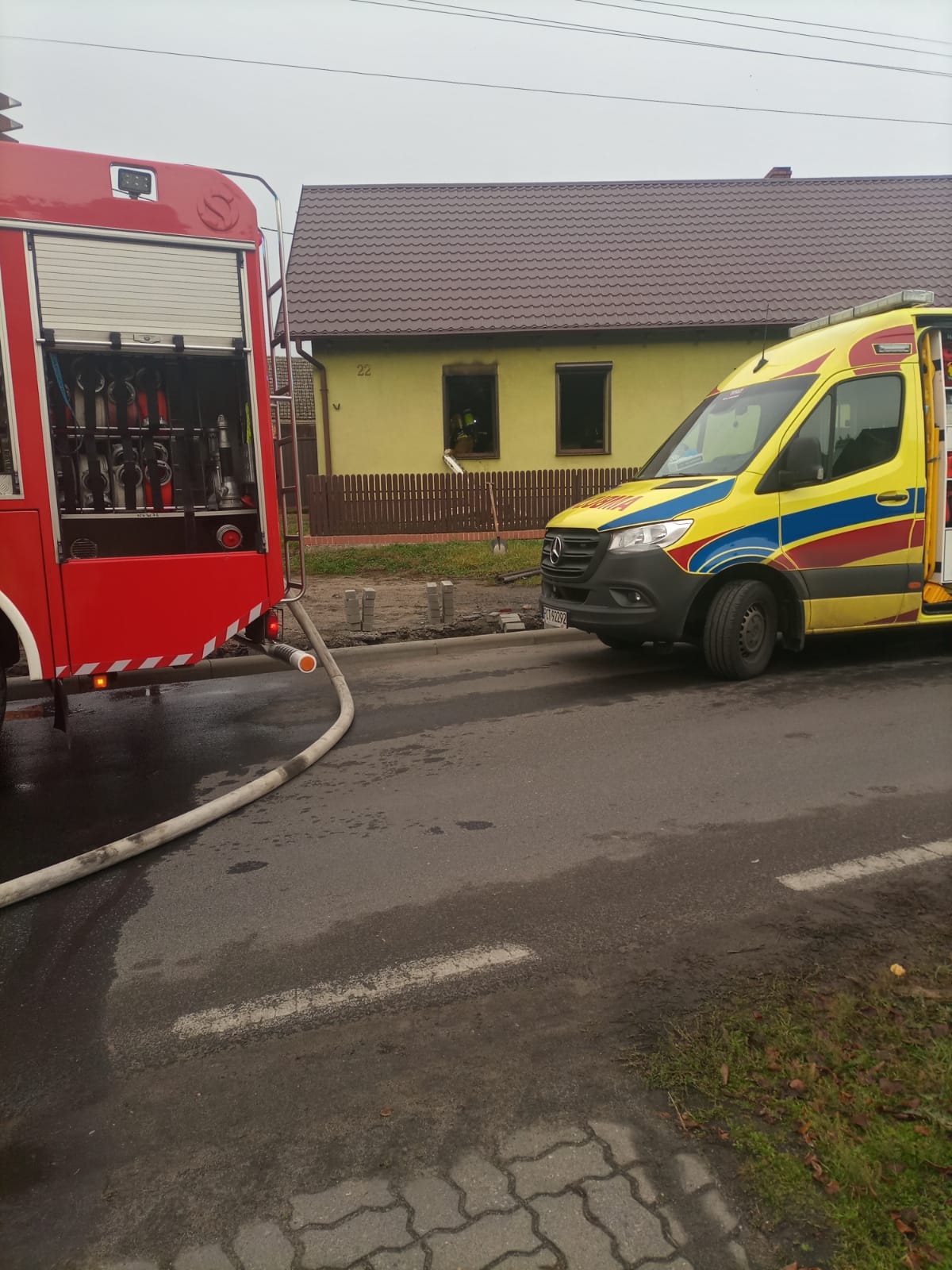 Po przybyciu na miejsce strażacy zastali w całości zadymiony parterowy dom jednorodzinny. W budynku znajdowała się jedna osoba, która dzięki pomocy robotnikom robiącym drogę jest cała i zdrowa.