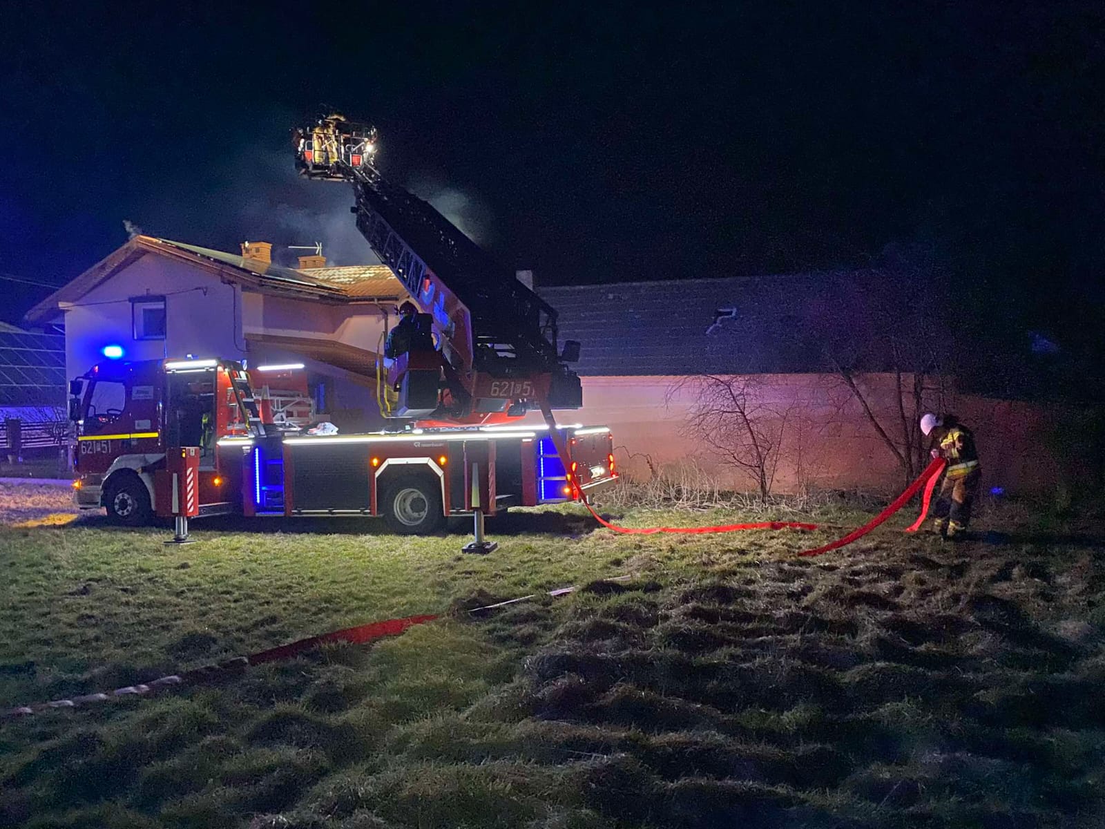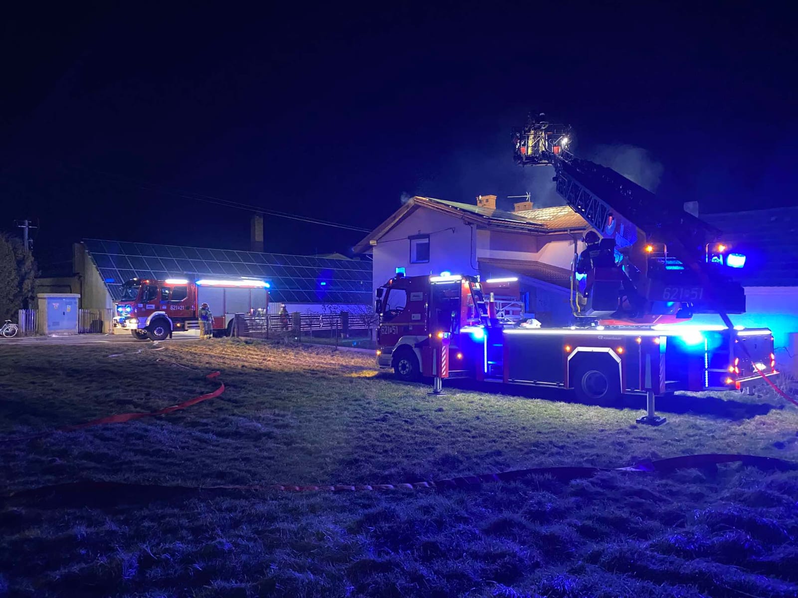 W chwili przyjazdu na miejsce zdarzenia pierwszych jednostek ochrony przeciwpożarowej, pożarem objęte było pomieszczenie kotłowni oraz poddasze budynku.