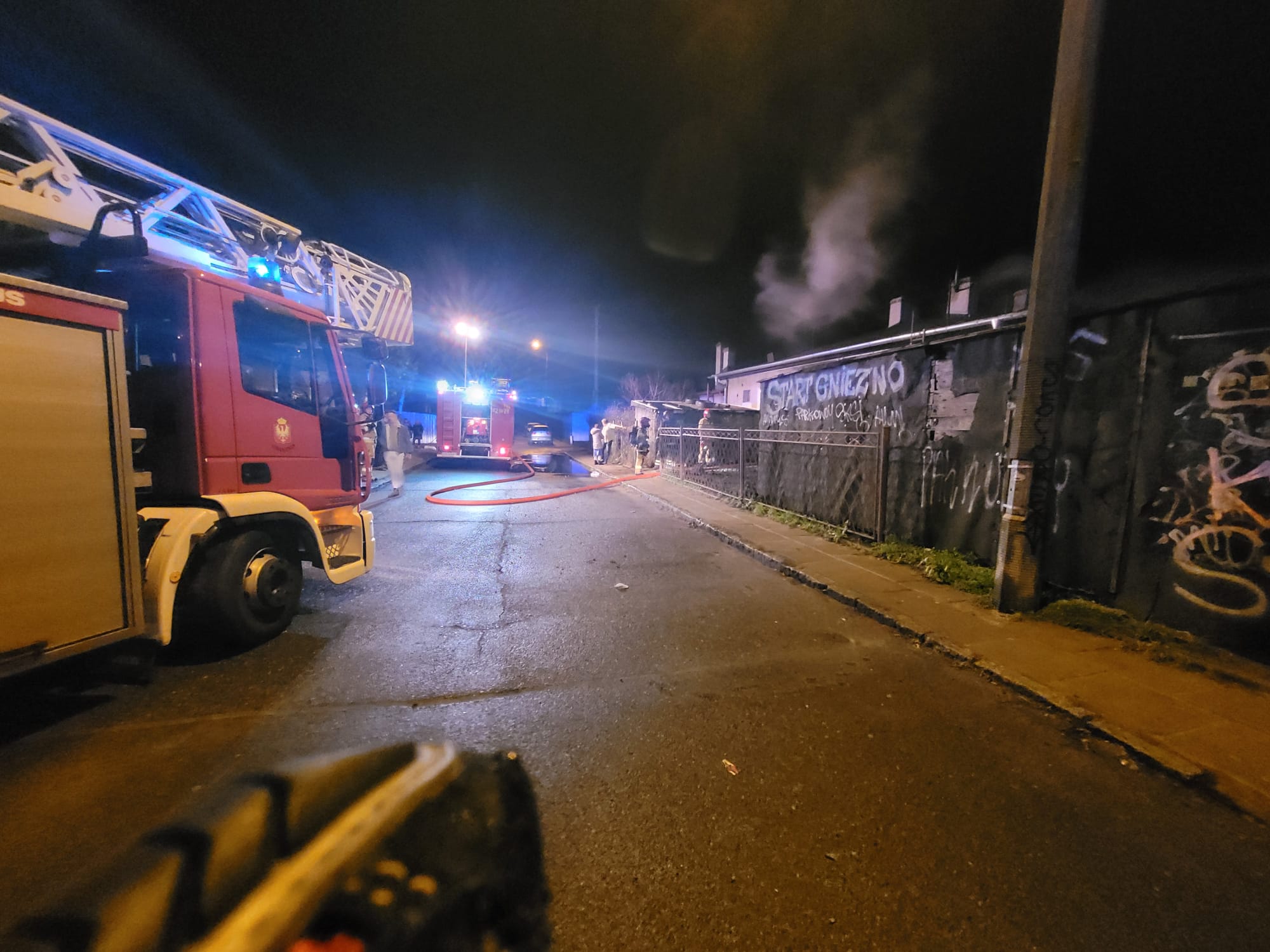 Na miejsce zdarzenia zadysponowano trzy zastępy z Jednostki Ratowniczo-Gaśniczej w Gnieźnie. Po przybyciu na miejsce zdarzenia zastano silne zadymienie wydobywające się z jednego z mieszkań budynku wielorodzinny typu barak. Właściciel mieszkania, który znajdował się na zewnątrz informował strażaków, że w mieszkaniu nie ma żadnych innych osób.