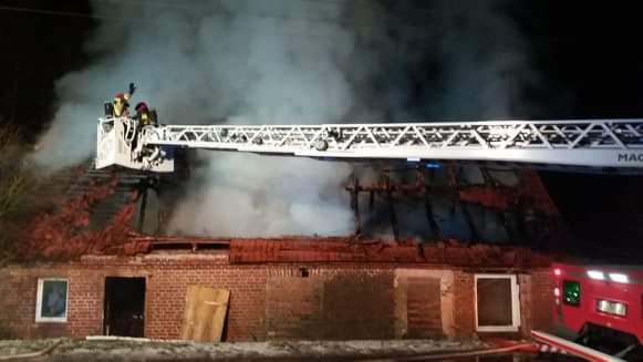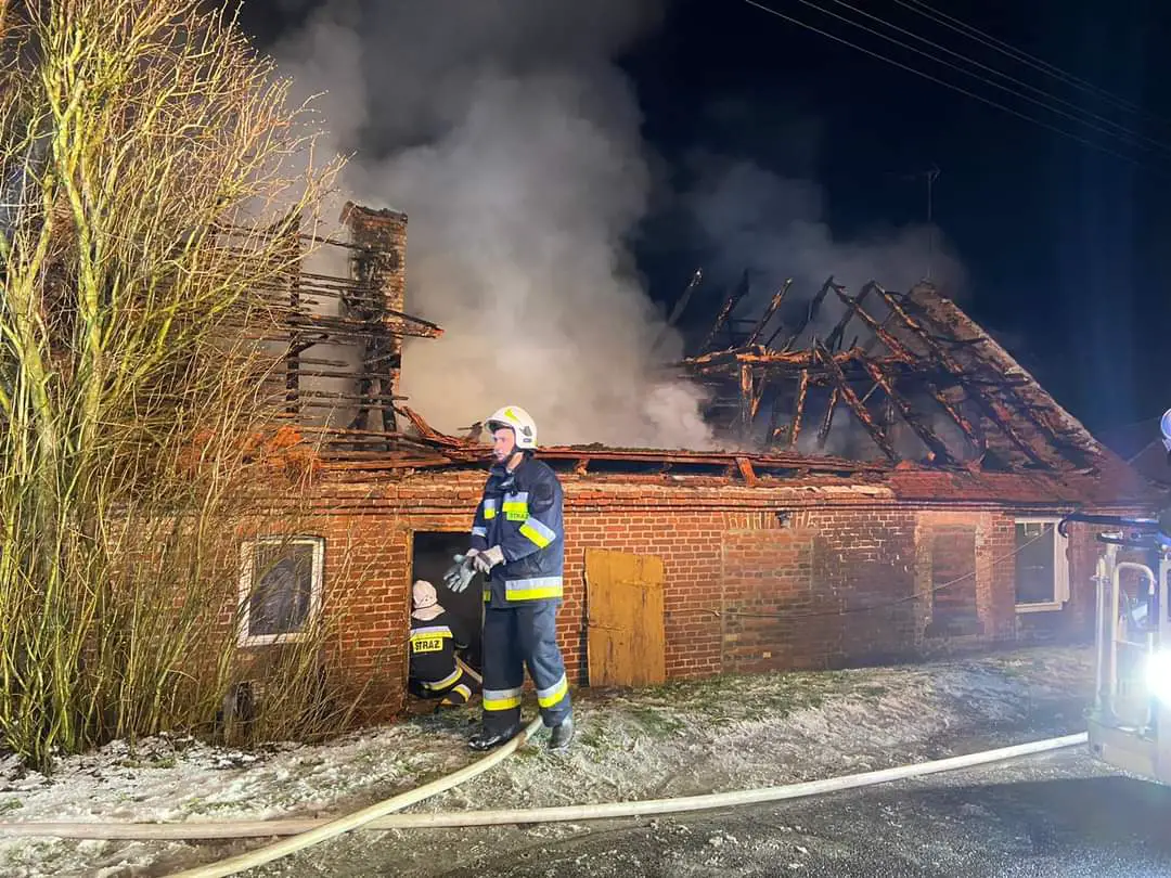 Po przybyciu zastępów straży pożarnej na miejsce zdarzenia cały budynek objęty był pożarem. W trakcie rozpoznania Kierujący Działaniami Ratowniczymi ustalił, że w momencie powstania pożaru domowników nie było wewnątrz budynku.