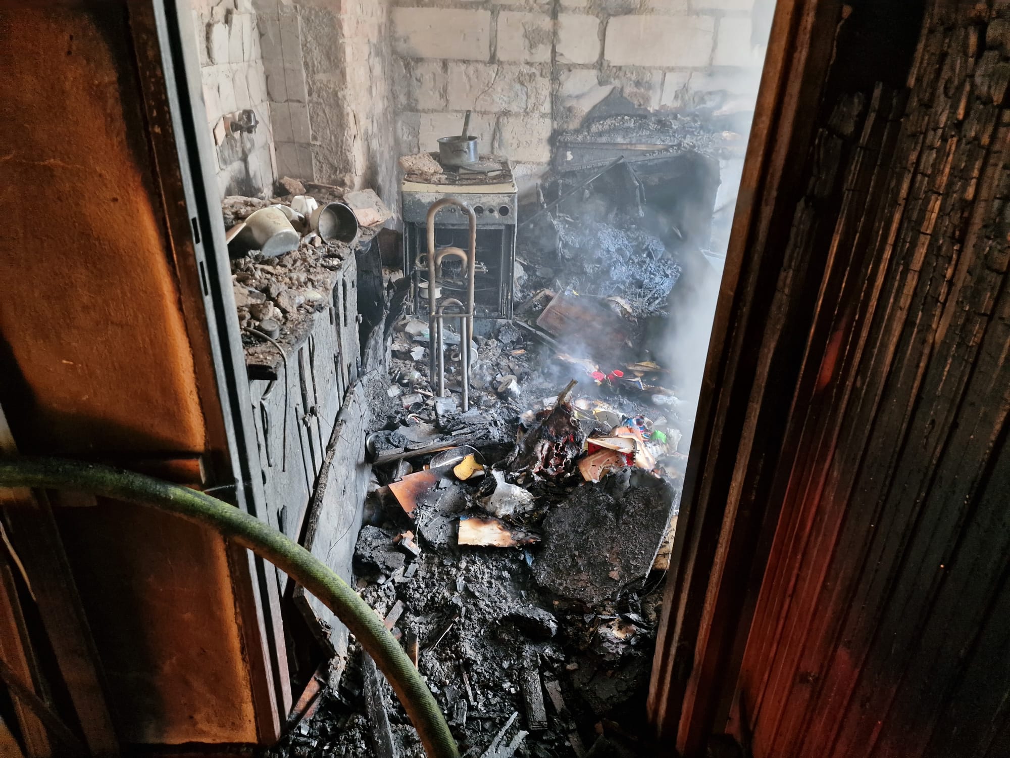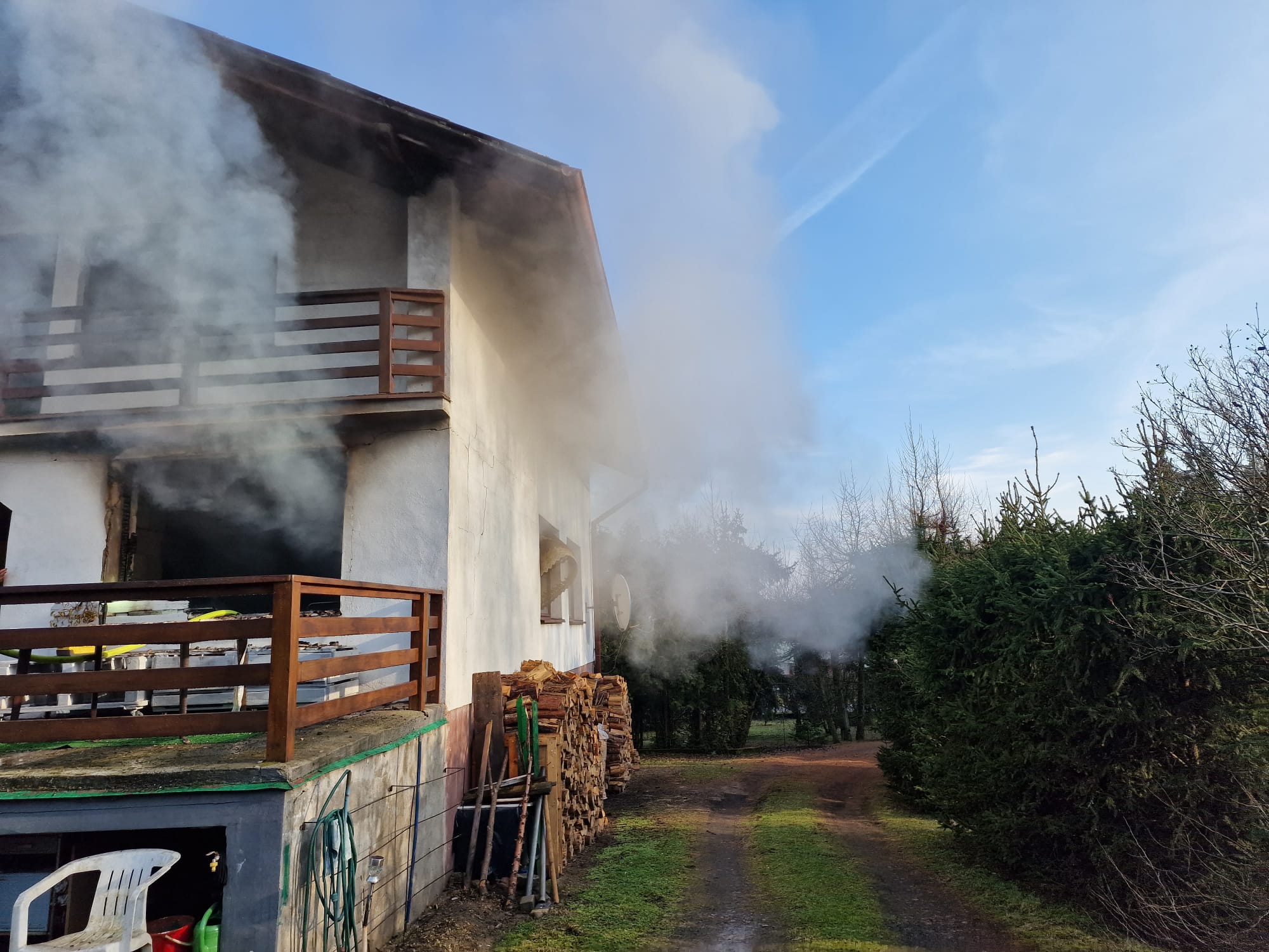 Po dojeździe na miejsce zdarzenia pierwszych zastępów zastano rozwinięty pożar w pomieszczeniu kuchennym budynku jednorodzinnego. Od sąsiadów uzyskano informacje, iż w budynku nie ma osób, a w środku mogą się znajdować butle z gazem.