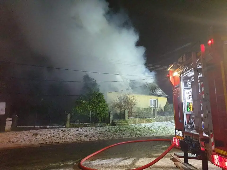 Do zdarzenia doszło w nocy z 12 na 13 stycznia, we wsi Łąkie (pow. złotowski). Spłonęło poddasze i wyposażenie domu. Wszyscy mieszkańcy zdążyli się ewakuować przed przybyciem służb.