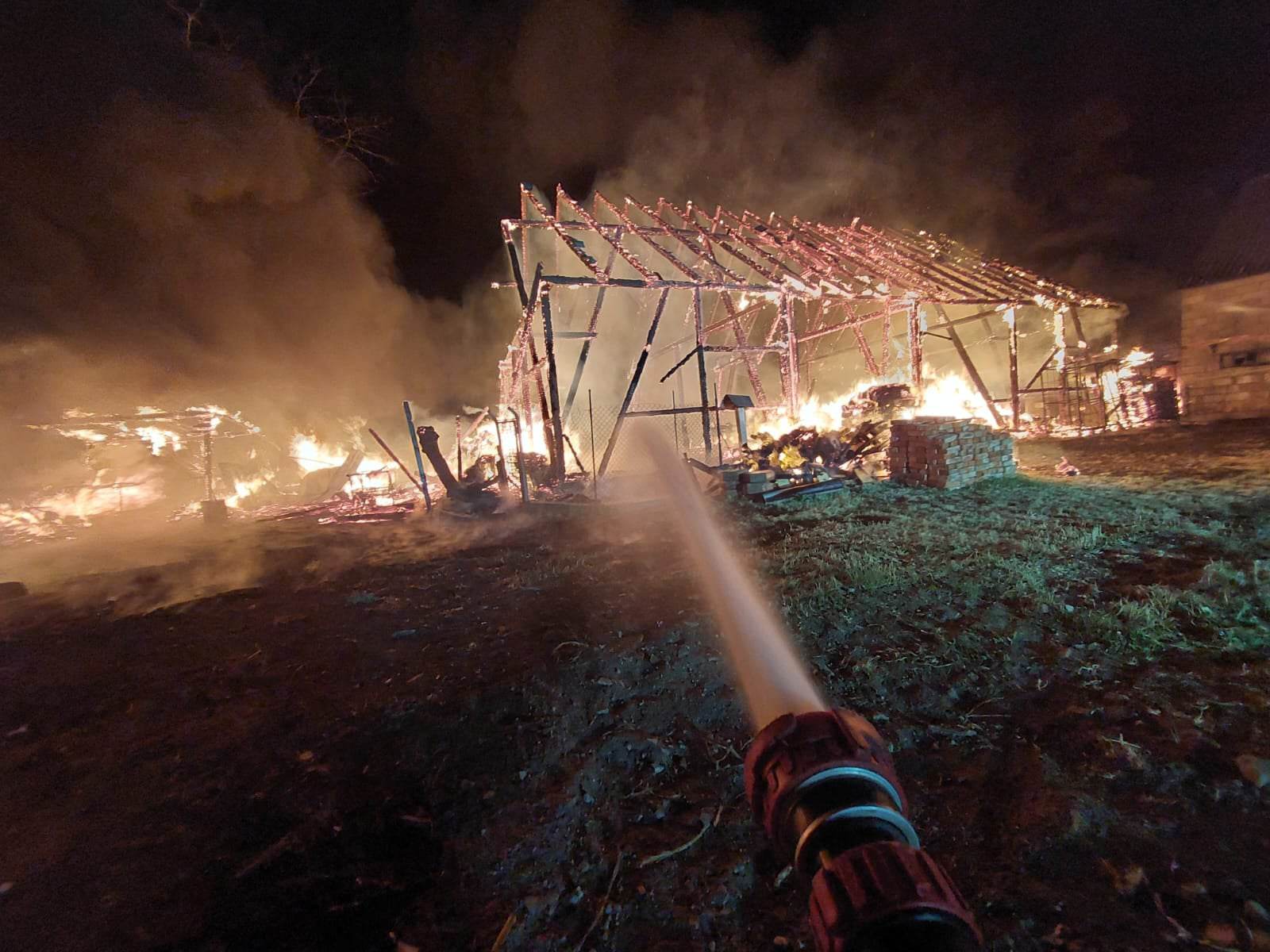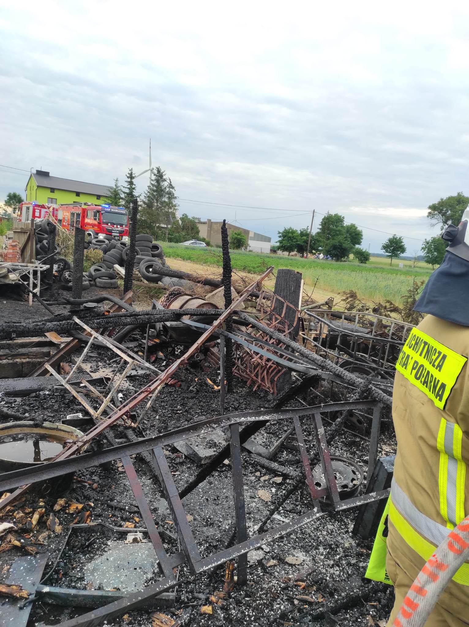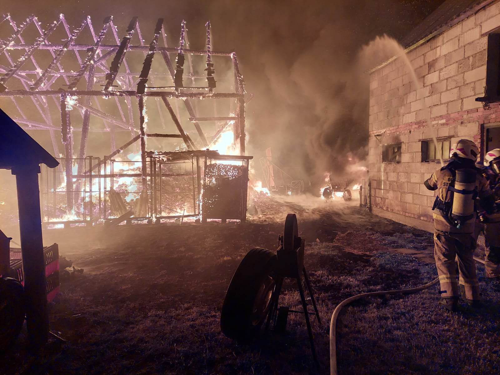 Po przybyciu na miejsce zdarzenia stwierdzono, że Pali się stodoła, która jest objęta w całości pożarem, zagrożona jest chlewnia oraz budynek mieszkalny – brak osób poszkodowanych.