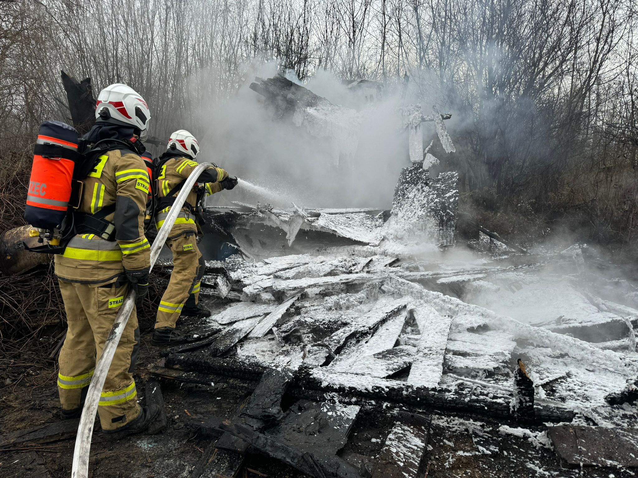 Gdy strażacy dotarli na wskazane miejsce zobaczyli, że pali się budynek o powierzchni około 30 metrów kwadratowych.