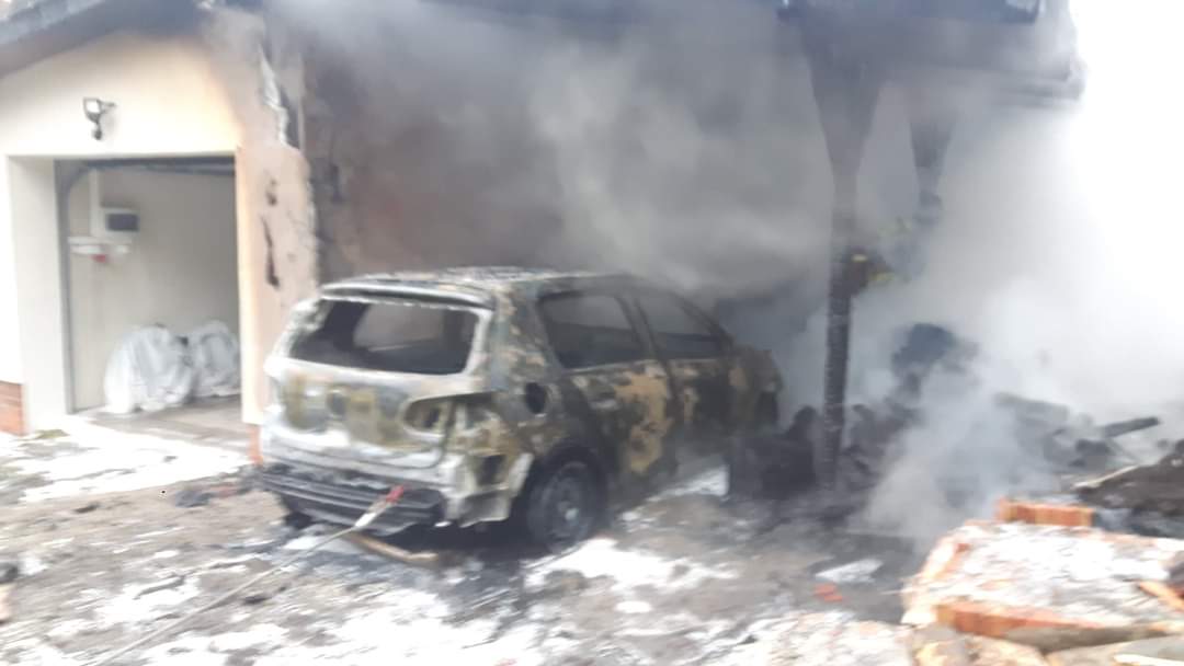 Po przybyciu na miejsce zdarzenia zastępów Straż Pożarnej ustalono iż pożarem objęty jest garaż wraz z zaparkowanym w nim pojazdem.