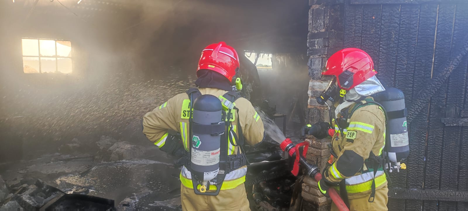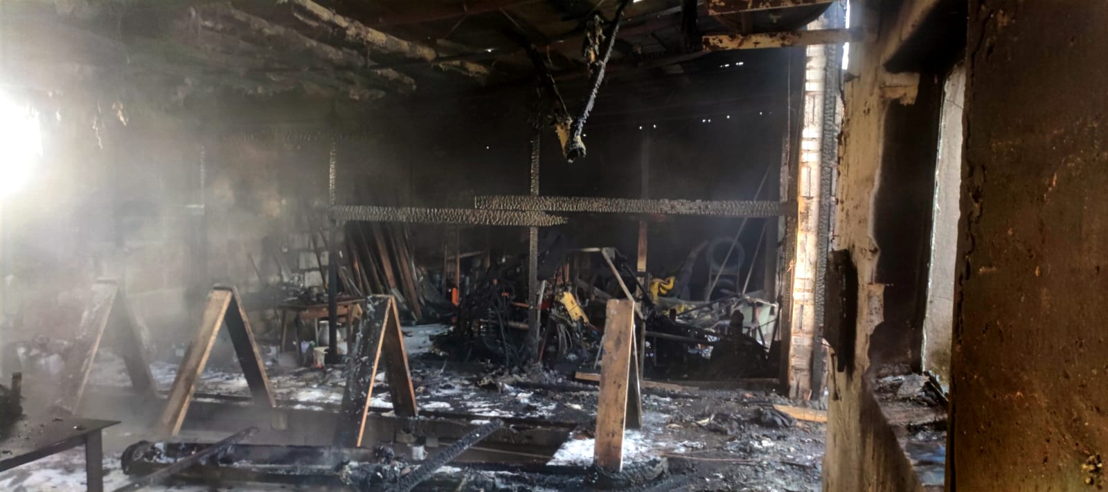 Po ugaszeniu pożaru wycięto otwory w dachu budynku w celu oddymienia pomieszczeń.