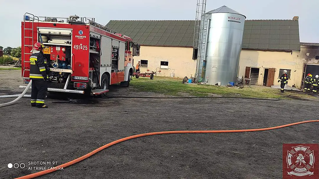 Działania straży pożarnej polegały na zabezpieczeniu miejsca zdarzenia. Strażacy natychmiast podali dwa prądy gaśnicze piany sprężonej z urządzeń ONE SEVEN i CAFS w natarciu na palące się obiekty oraz jeden prąd gaśniczy wody w obronie zagrożonych budynków inwentarskich i magazynowych. Podjęte działania gaśnicze z wykorzystaniem sprężonej piany doprowadziły do szybkiej lokalizacji pożaru, i tym samym do ograniczenia strat powstałych w wyniku pożaru. Po stłumieniu ognia i sprawdzeniu stanu elementów konstrukcyjnych obiektu strażacy weszli do wnętrza garażu, z którego usunęli na zewnątrz nadpalone materiały palne i dogasili je wodą.