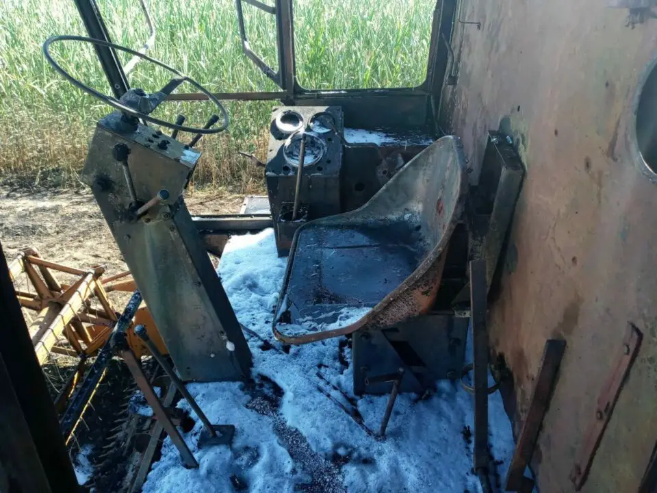 Po dojeździe pierwszego zastępu ogniem był objęty cały kombajn i częściowo ściernisko wokół palącego się kombajnu. Podane zostały 2 prądy piany w natarciu na palący się kombajn.