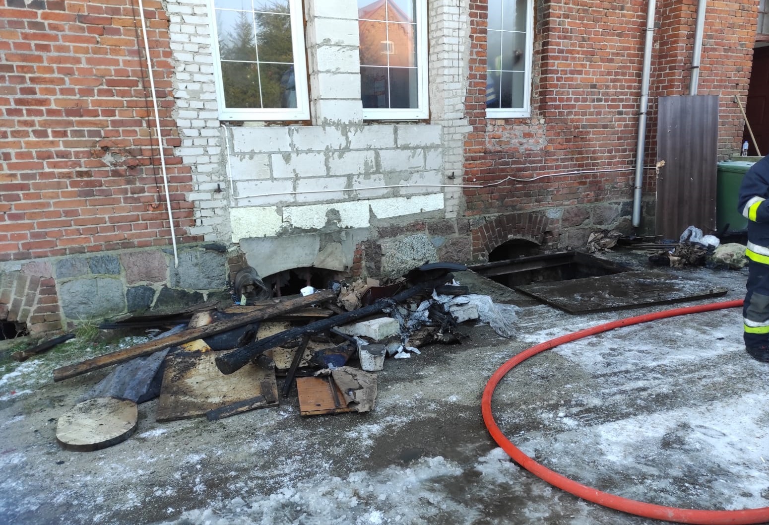 Działania straży pożarnej polegały na zabezpieczeniu miejsca zdarzenia, a w międzyczasie podano dwa prądy wody w natarciu na palące się materiały w kotłowni oraz piwnicy. Następny etap działań polegał na dogaszeniu elementów, które jeszcze się tliły i wyciągnięciu ich na zewnątrz budynku. W wyniku pożaru spaleniu uległo wyposażenie kotłowni oraz piwnicy w, której znajdowały się materiały palne. Elewacja budynku uległa tylko okopceniu.