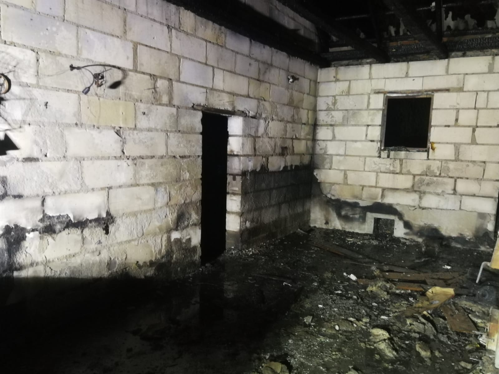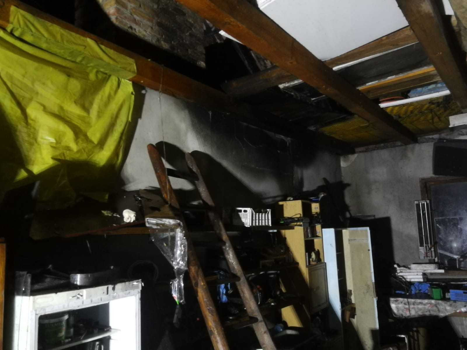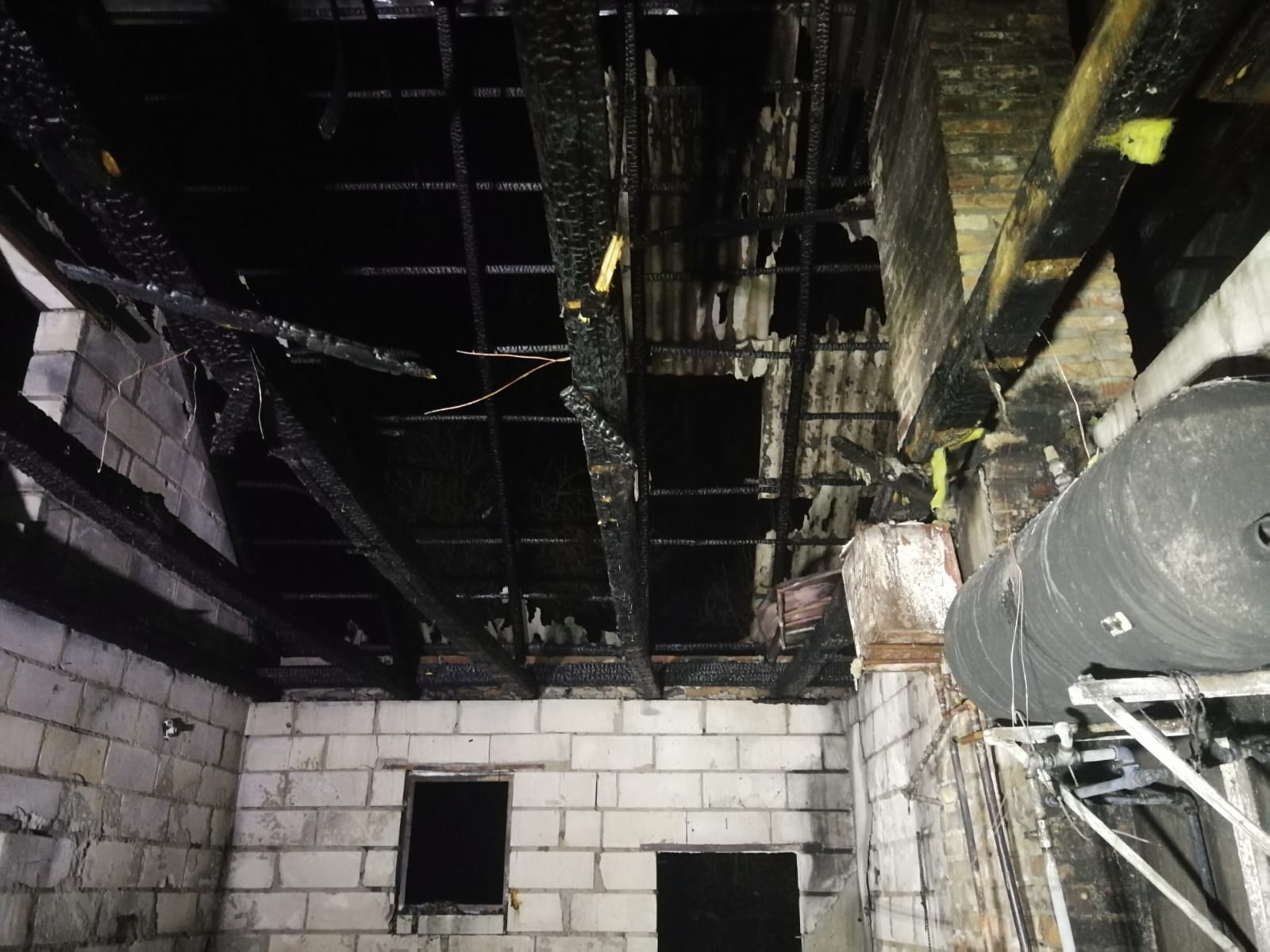 W momencie dojazdu na miejsce zdarzenia strażacy zastali rozwinięty pożar budynku gospodarczego oraz zarzewia ognia przechodzące na elewację, zadaszenie tarasu oraz podbitki dachowej budynku mieszkalnego. Wszyscy mieszkańcy opuścili budynek nie odnosząc obrażeń. Działania straży pożarnej polegały na zabezpieczeniu miejsca zdarzenia, oświetleniu terenu, podaniu trzech prądów gaśniczych na w/w budynki. Po ugaszeniu zarzewi przystąpiono do prac rozbiórkowych nadpalonych elementów konstrukcyjnych i usunięciu innych pozostałości po pożarze. Dalsze działania polegały na sprawdzeniu rozkładu temperatur oraz stanu atmosfery gazowej wewnątrz pomieszczeń objętych pożarem.