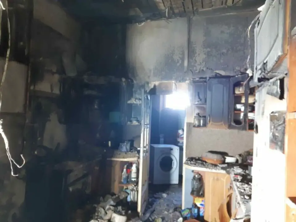 Spaleniu uległo pomieszczenie kuchenne wraz z wyposażeniem. Zadymieniu oraz okopceniu uległy pozostałe pomieszczenia mieszkania i przylegającego ciągu komunikacyjnego.