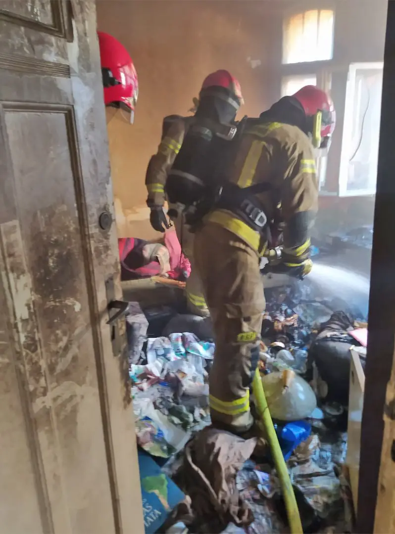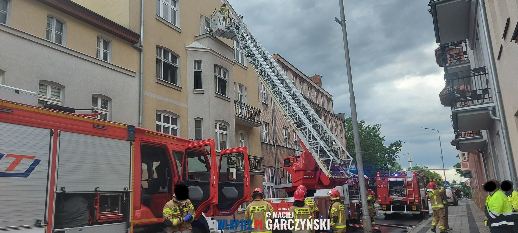 Po przybyciu na miejsce zdarzenia pierwszych zastępów straży pożarnej stwierdzono, że pożarem objęte jest mieszkanie zlokalizowane na drugim piętrze kamienicy.