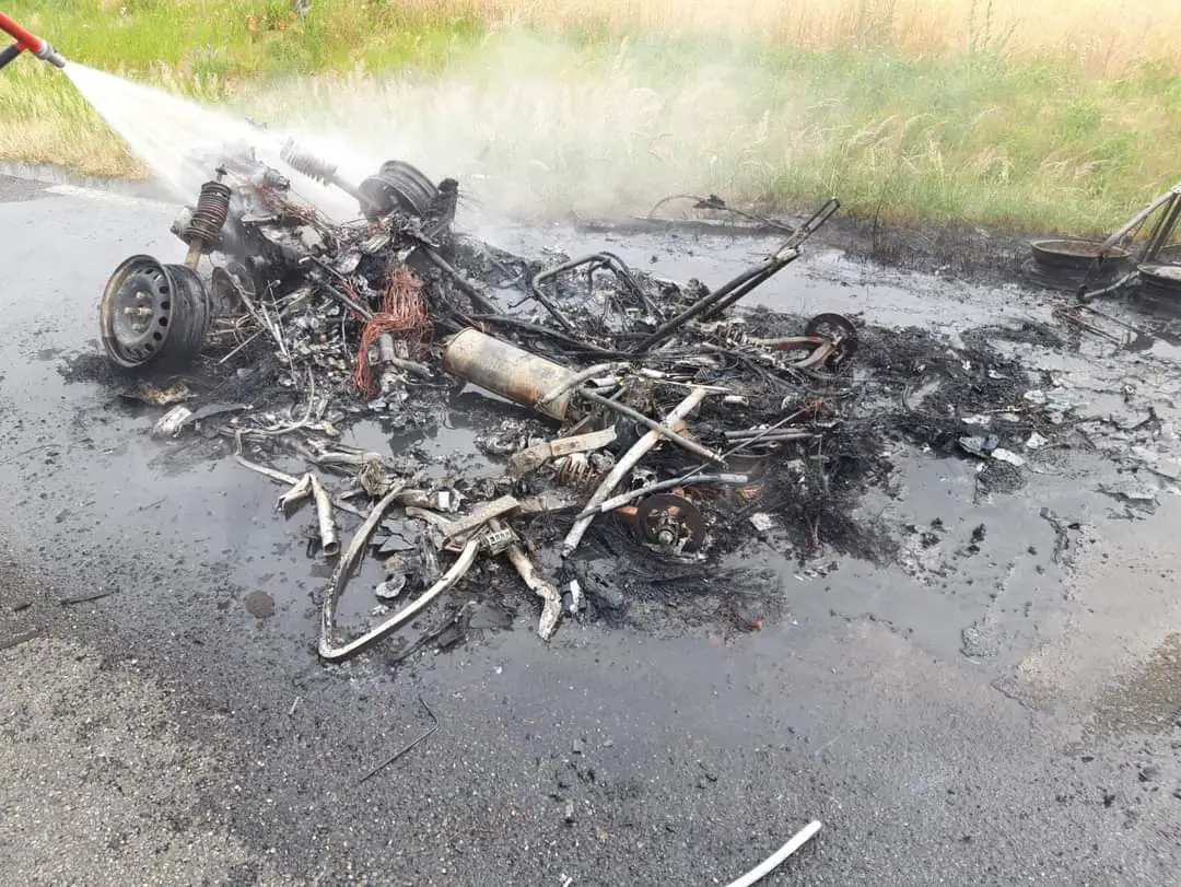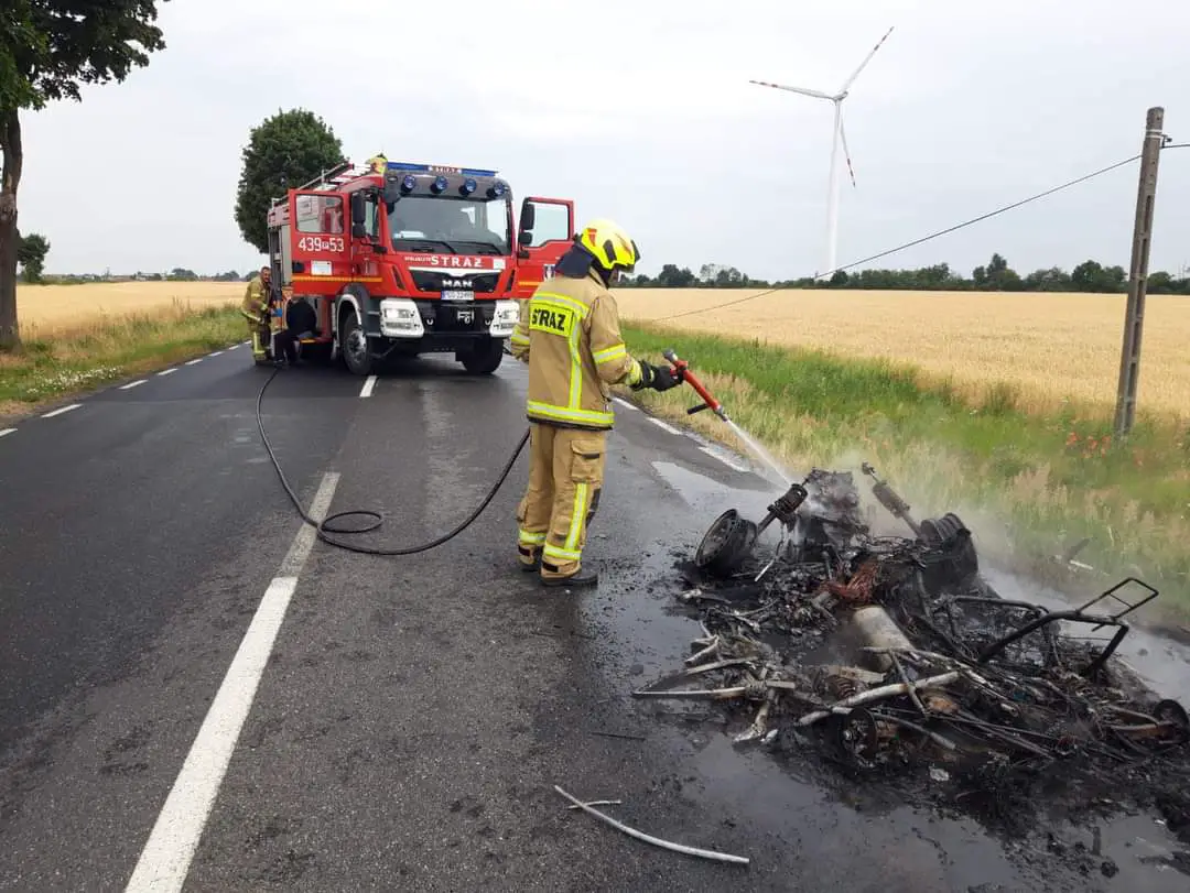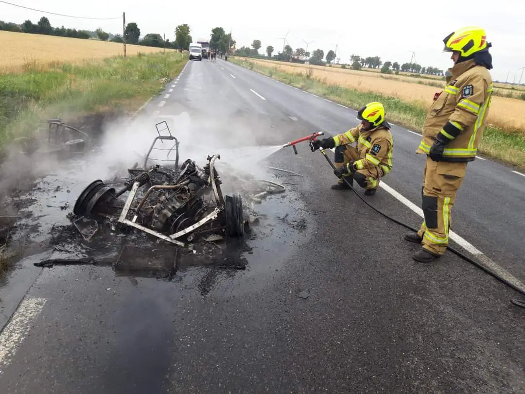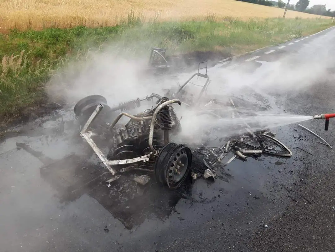 Pozostały pozostały po aucie, które spłonęło na drodze wojewódzkiej 434 w pobliżu Krobi. Kierowca mini-cara w porę zdążył opuścić samochód, ale pojazdu nie udało się już uratować. Strażacy przybyli na miejsce ugasili to, co z niego pozostało.