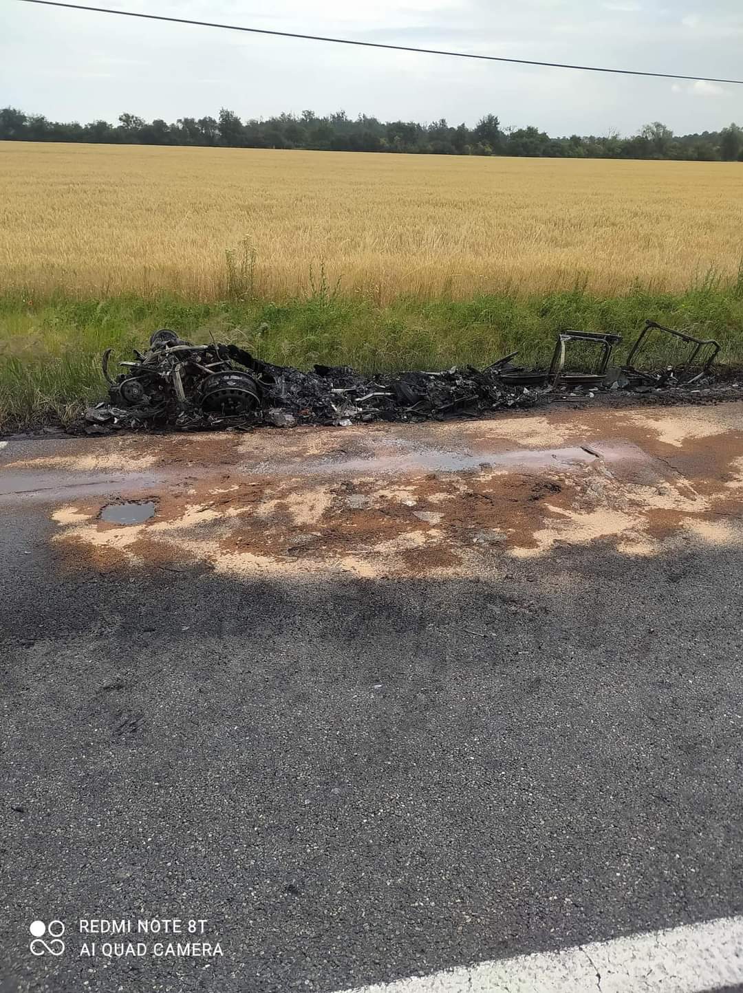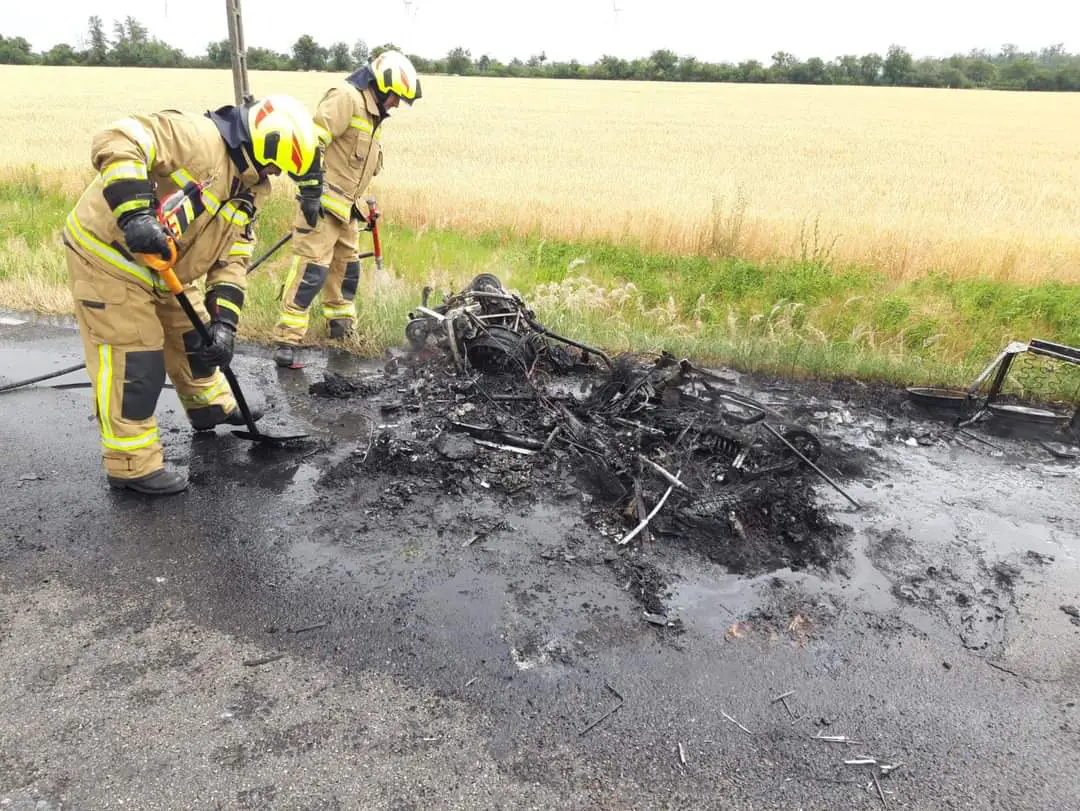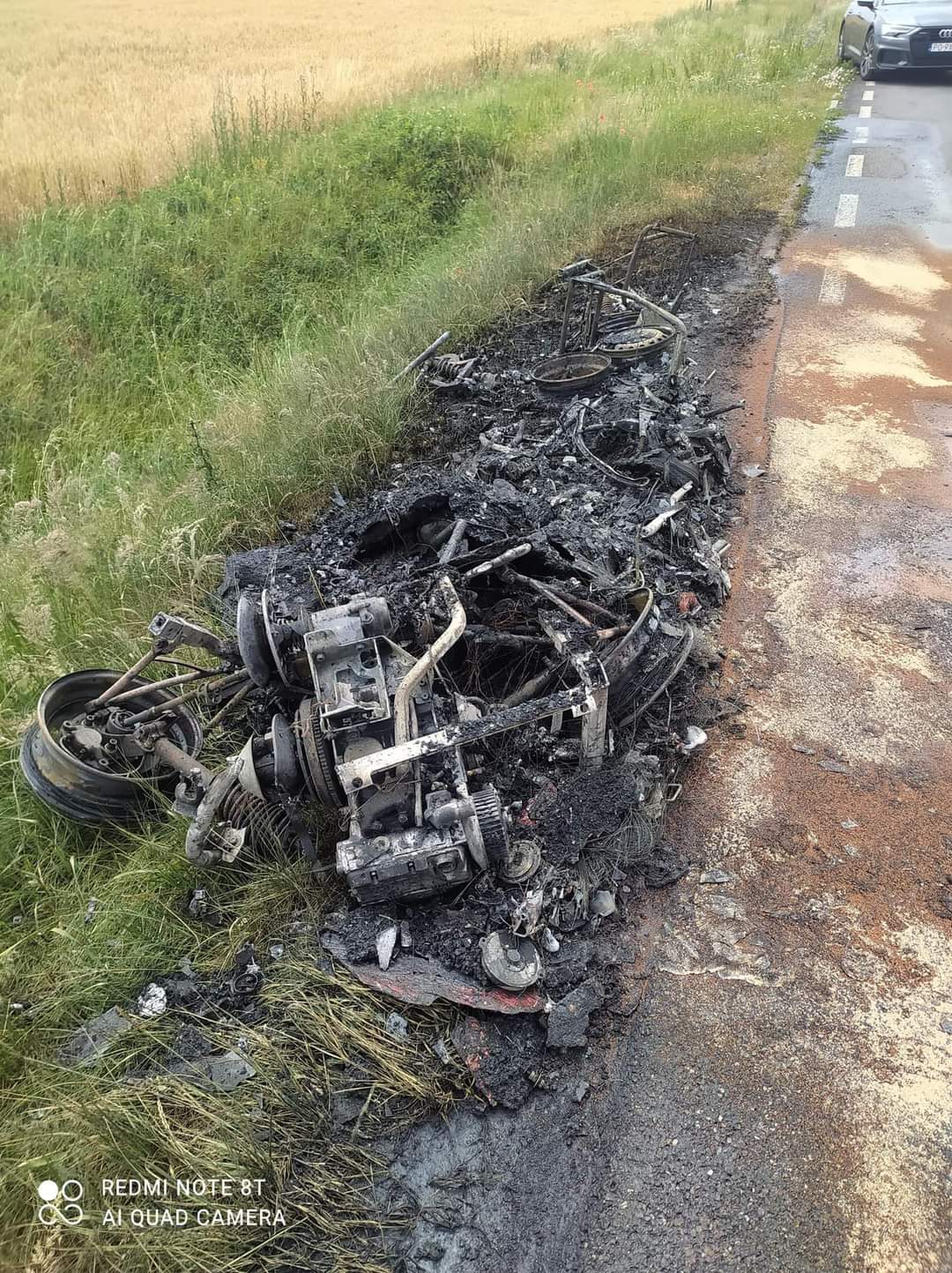 Pozostały pozostały po aucie, które spłonęło na drodze wojewódzkiej 434 w pobliżu Krobi. Kierowca mini-cara w porę zdążył opuścić samochód, ale pojazdu nie udało się już uratować. Strażacy przybyli na miejsce ugasili to, co z niego pozostało.