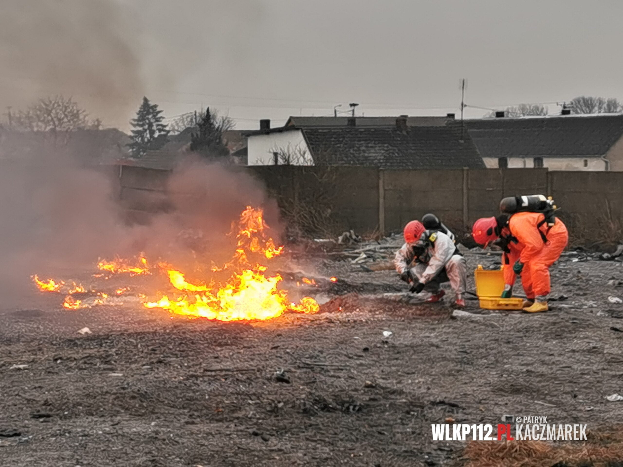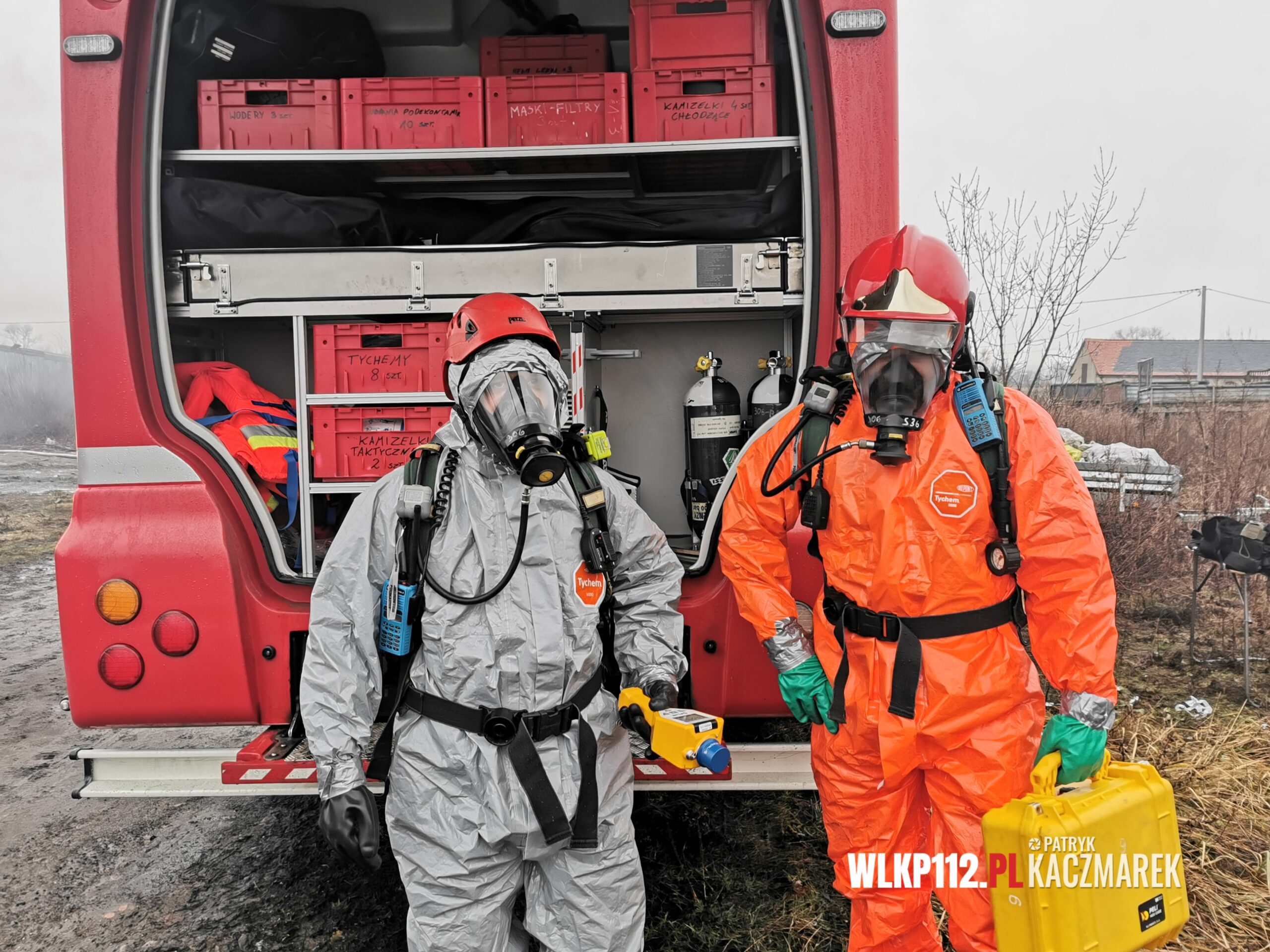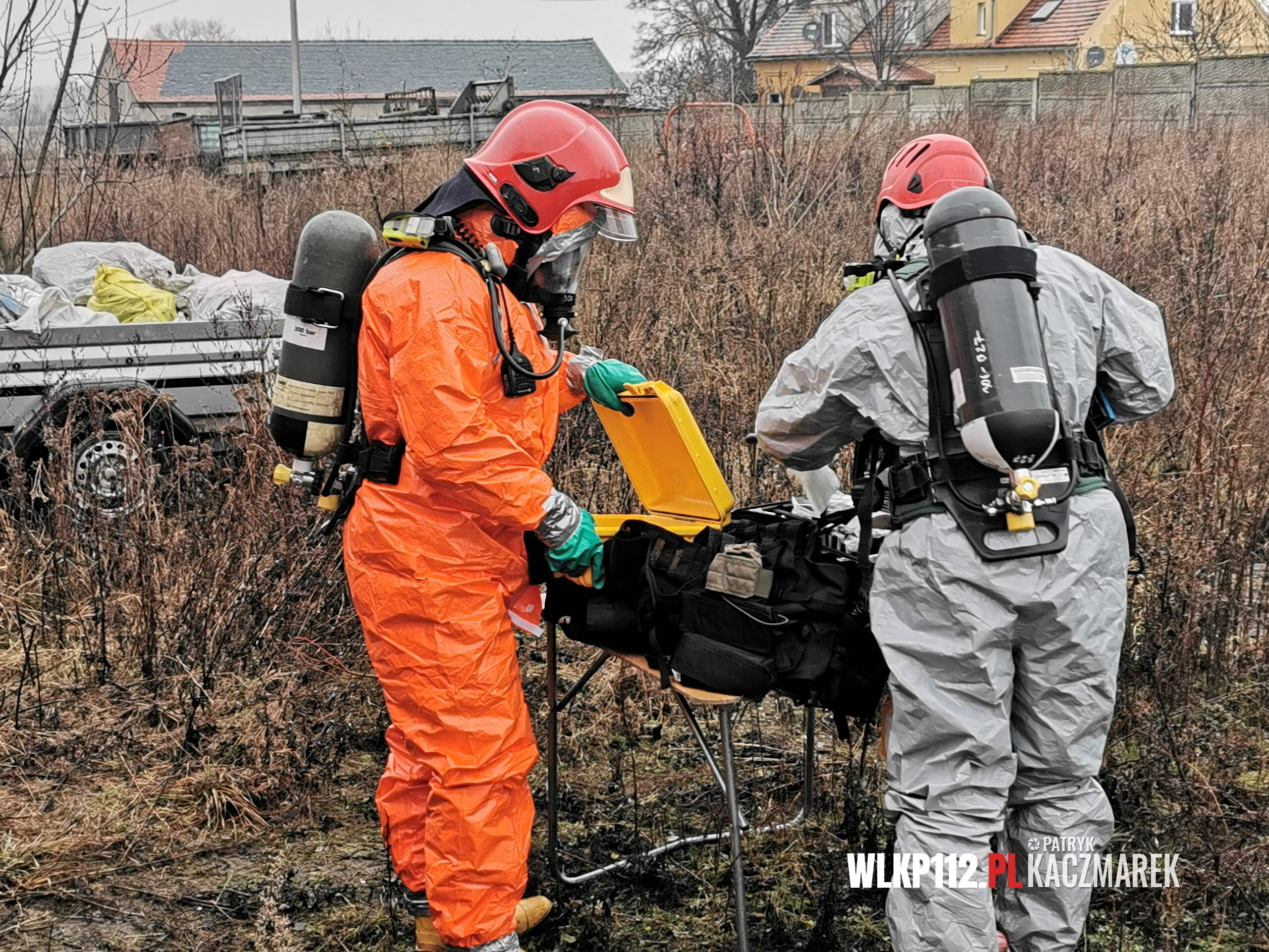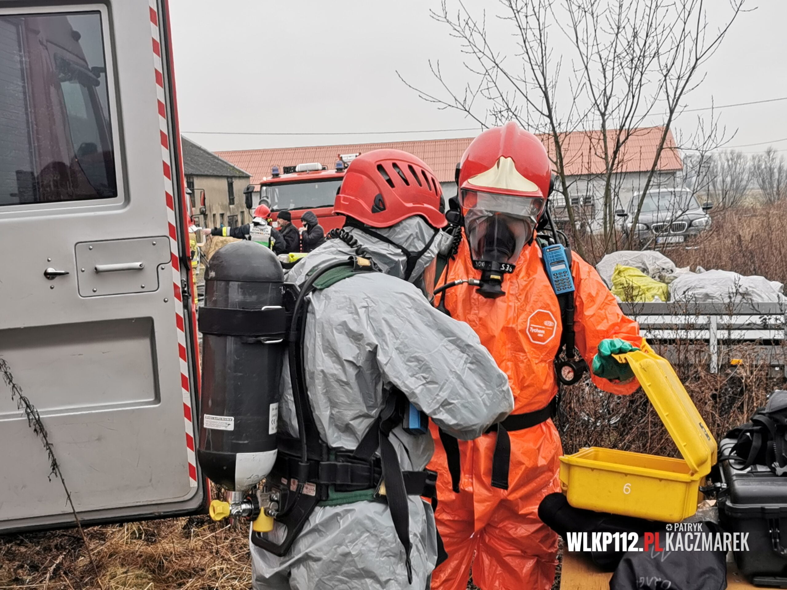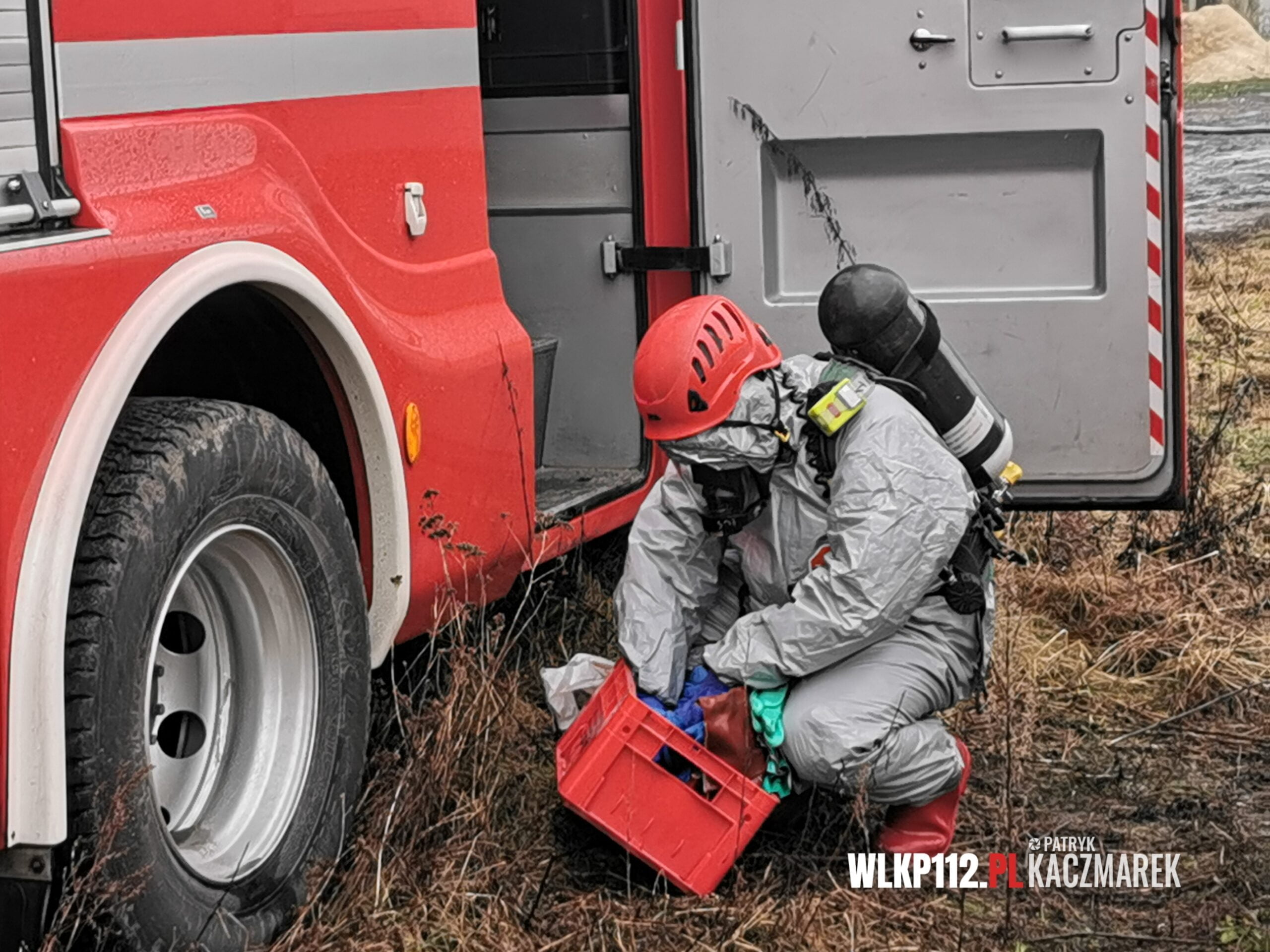 Po dojeździe na miejsce Grupy Chemicznej z Poznania strażacy ubrani w specjalistyczne skafandry rozpoczęli pobieranie próbek, które później zostały podane identyfikacji.