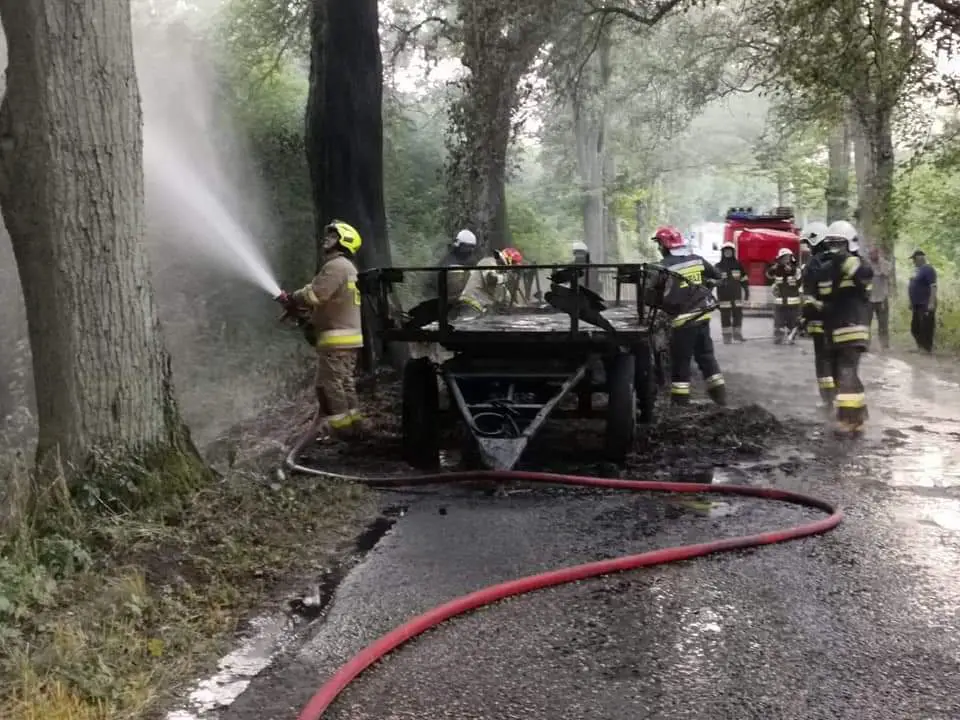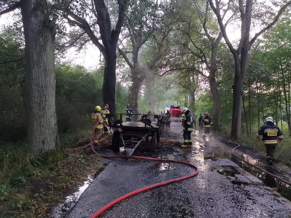 Do pożaru przyczep z słomą doszło na drodze powiatowej między miejscowościami Łąkie a Kełpin.