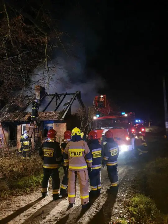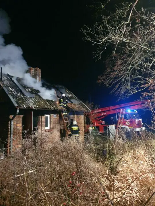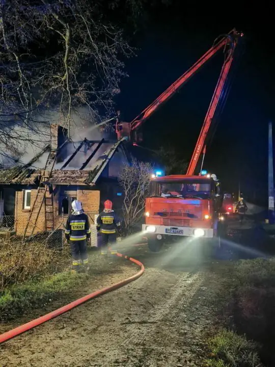 Po przybyciu na miejsce zdarzenia pierwszych zastępów straży pożarnej stwierdzono, że pożarem objęte jest w całości poddasze budynku w zabudowie wolnostojącej. Pierwsze działania strażaków skupiły się zabezpieczeniu miejsca zdarzenia, jego oświetleniu oraz poszukiwaniu osób, które mogły potencjalnie znajdować się w obiekcie. Równocześnie podano prądy wody na palące się poddasze. Na szczęście, w chwili powstania pożaru, obiekt nie był zamieszkały i nikt nie odniósł obrażeń w wyniku powstałego zdarzenia. Dalsze działania polegały na rozbiórce nadpalonych elementów oraz konstrukcji dachowej.