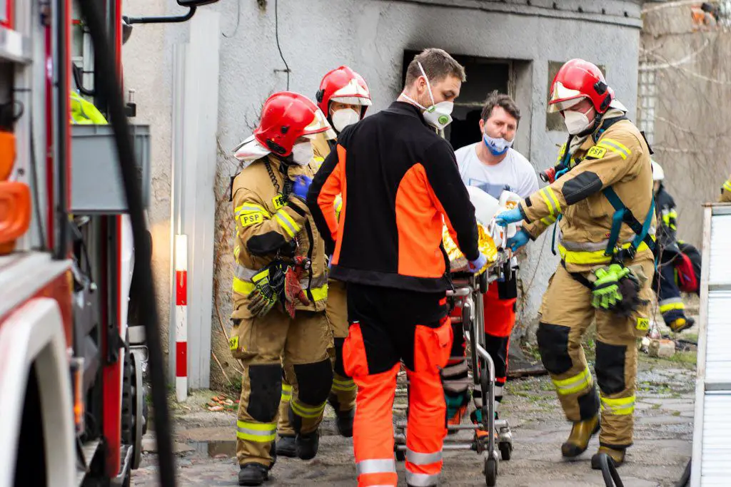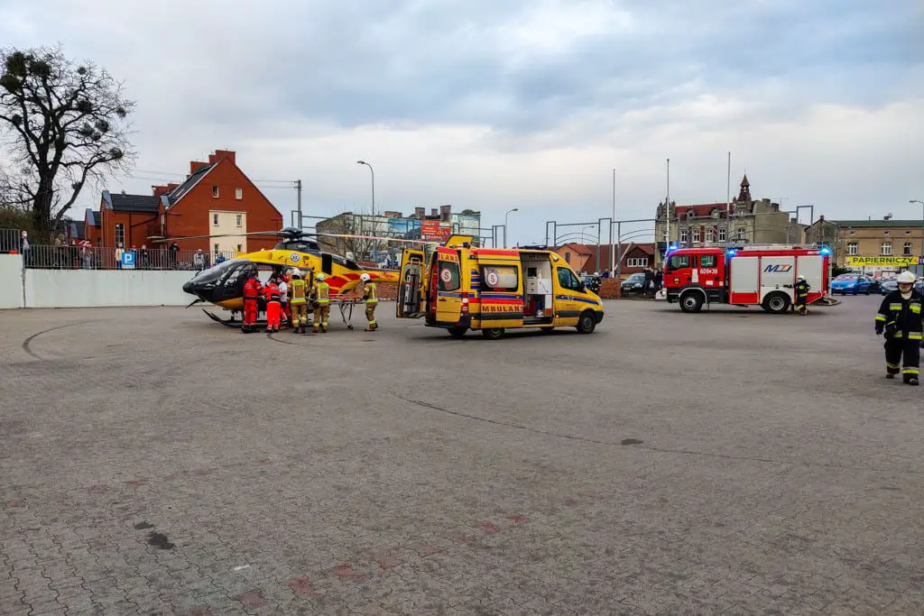 ZRM podjął decyzję o zadysponowaniu LPR na miejsce zdarzenia w celu zabrania poparzonego i ewakuowanego mężczyzny do szpitala. KDR wyznaczył jeden zastęp, który udał się na zabezpieczenie lądowiska dla śmigłowca. Lotnicze Pogotowie Ratunkowe po przybyciu na miejsce zabrało mężczyznę do szpitala. Pozostali dwaj mężczyźni zostali przebadani, a ich życiu nic nie zagrażało i stwierdzono, że nie wymagają hospitalizacji.