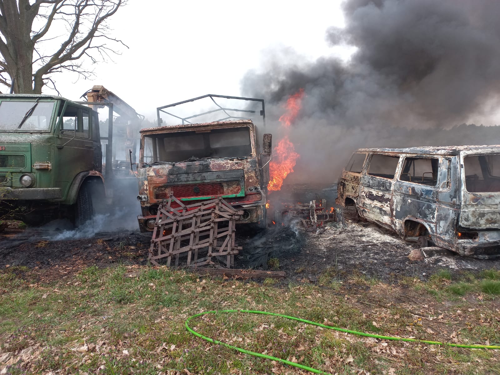 30 kwietnia 2022 r. o godzinie 09:29 do Stanowiska Kierowania Komendanta Powiatowego w Czarnkowie wpłynęło zgłoszenie o pożarze samochodów na składowisku pojazdów do utylizacji.