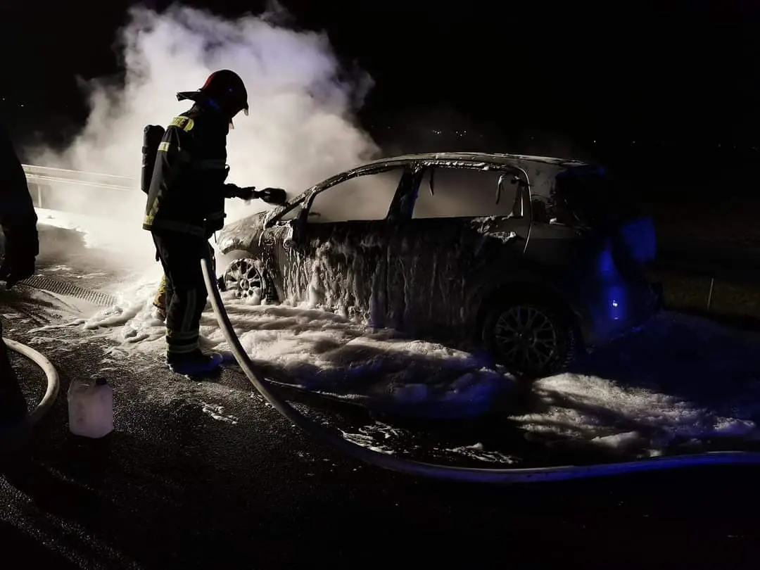 Dwa zastępy zostały zadysponowane do pożaru pojazdu, do którego doszło w czwartkowy wieczór na drodze ekspresowej S5.