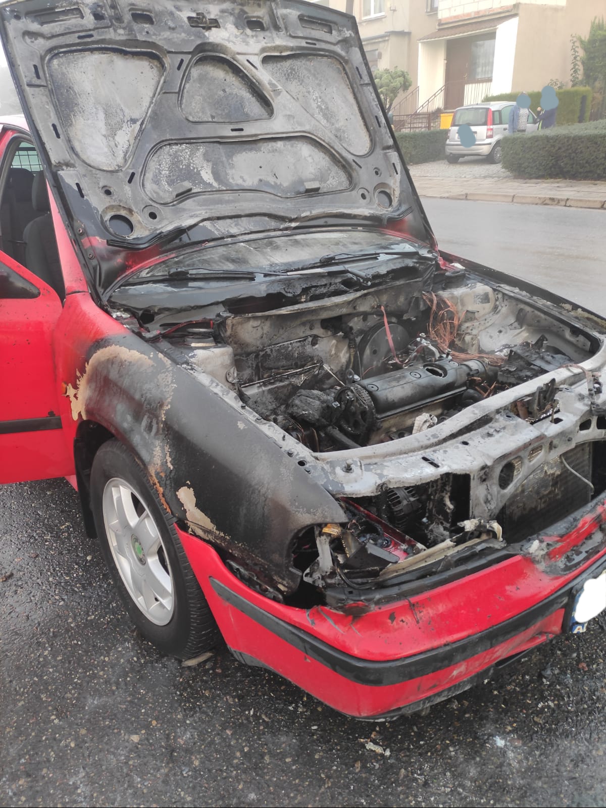 W momencie przyjazdu służb pożarem objęta komora silnika. Strażacy ugasili płomienie i sprawdzili pojazd przy pomocy kamery termowizyjnej nie stwierdzając już zagrożenia – informuje portal wlkp112.pl Dawid Kryś z kościańskiej straży pożarnej