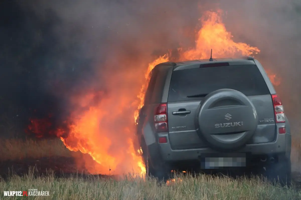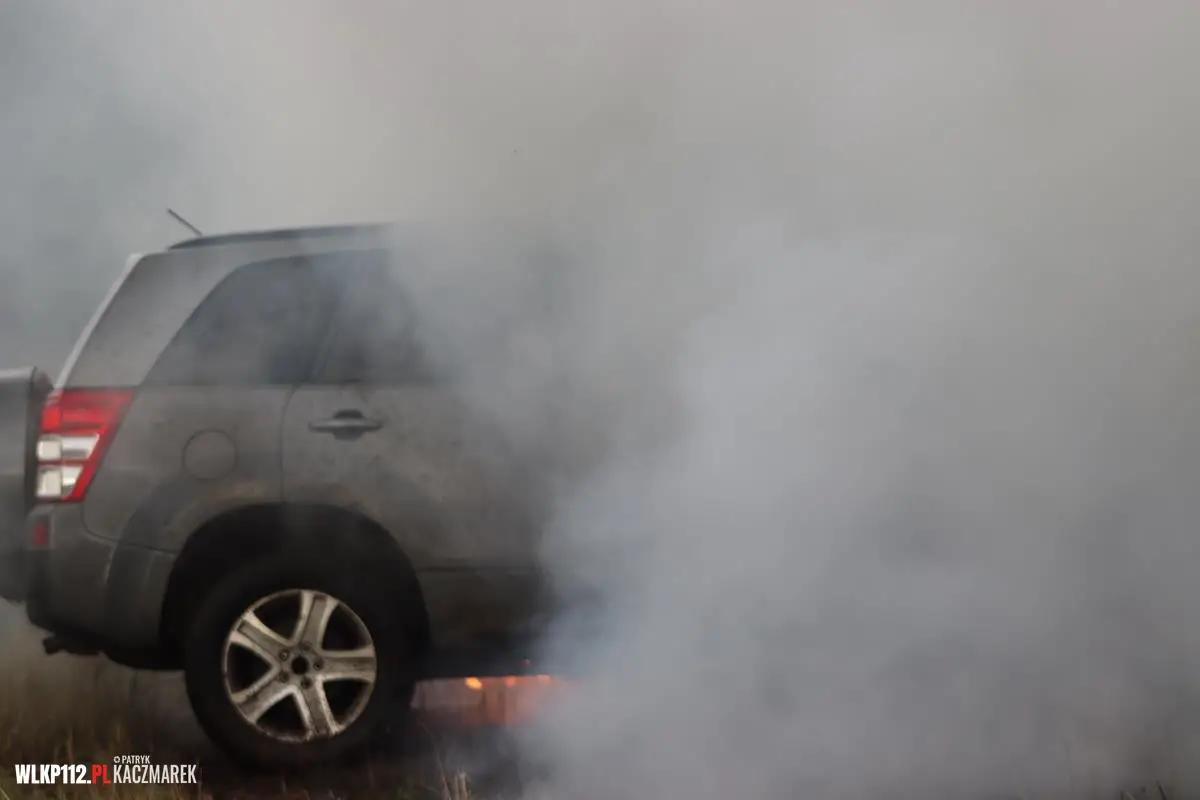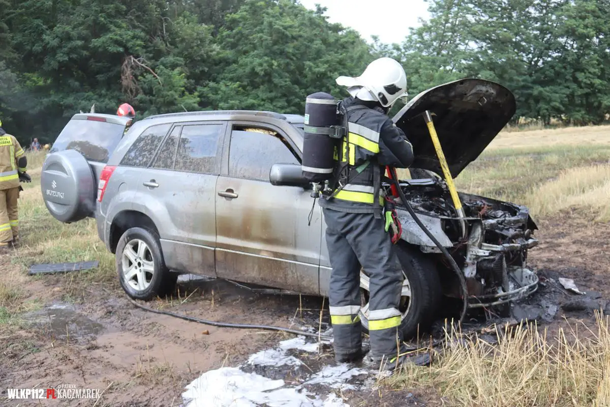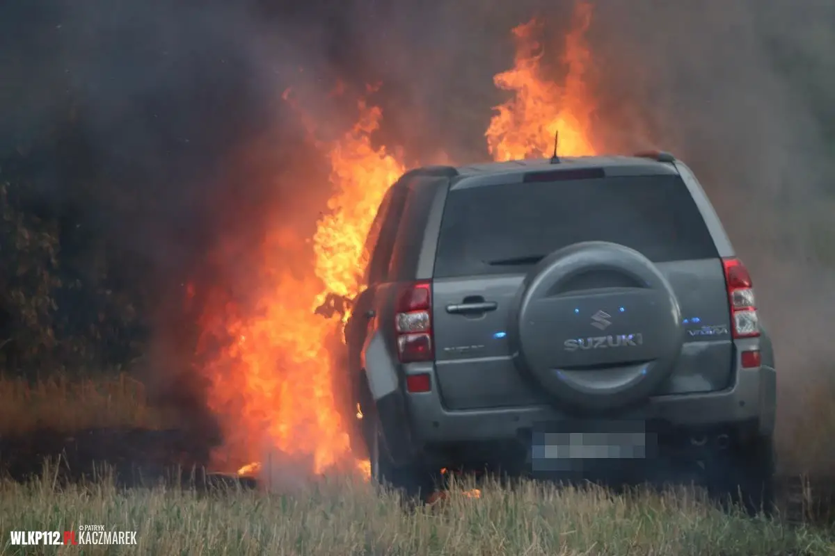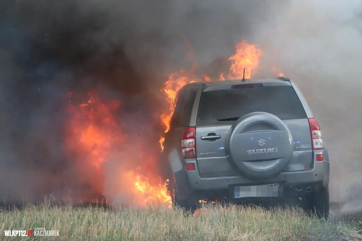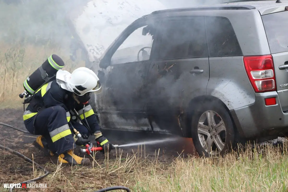 O sporym szczęściu może mówić kierowca osobowego Suzuki, który podczasz jazdy zapalił się. Kierowcy nic się nie stało.