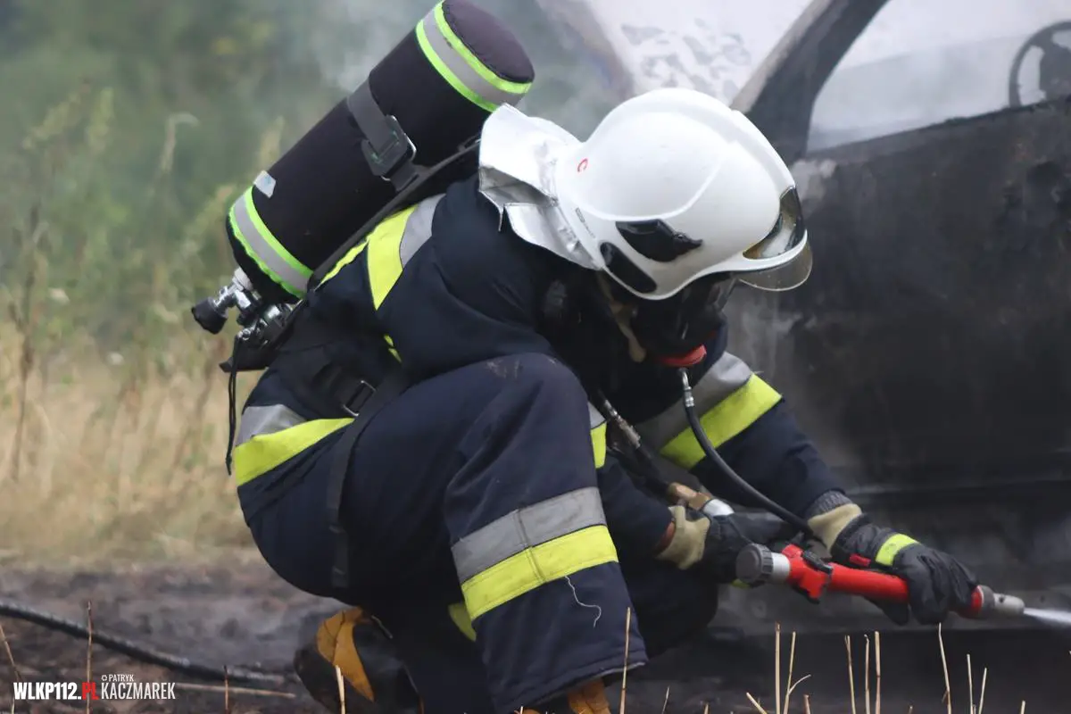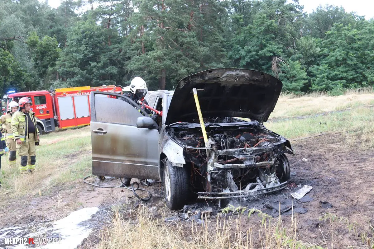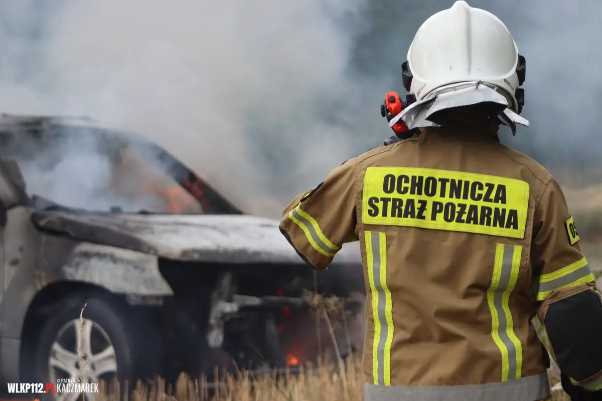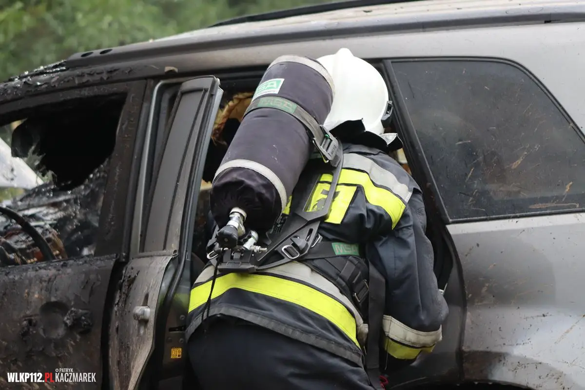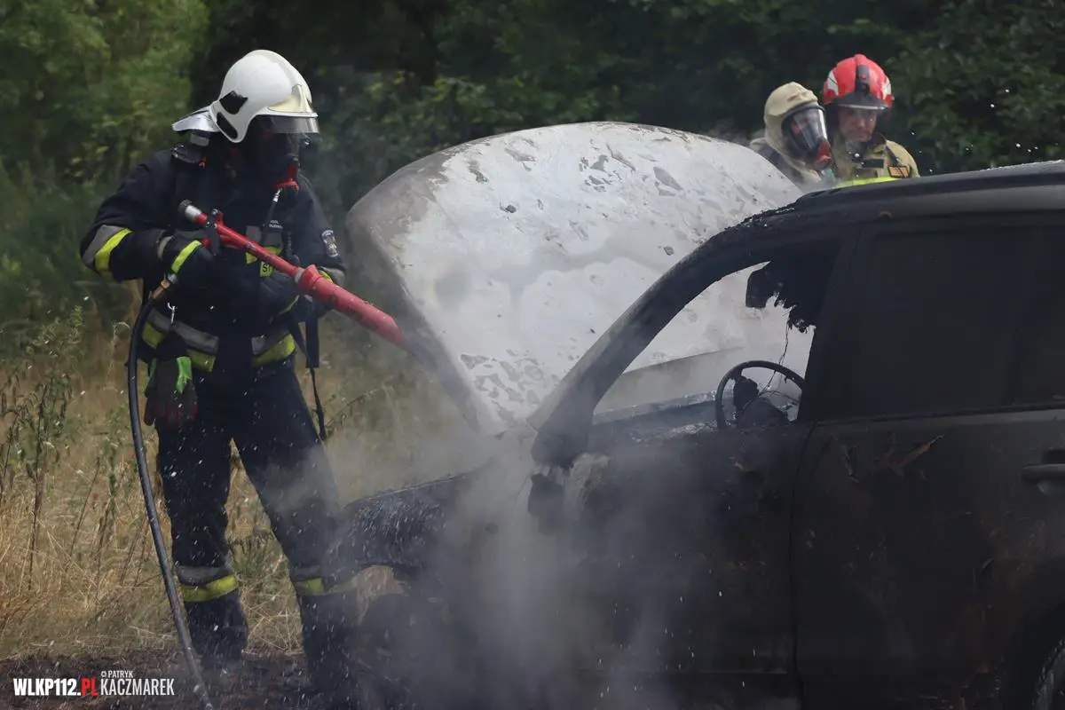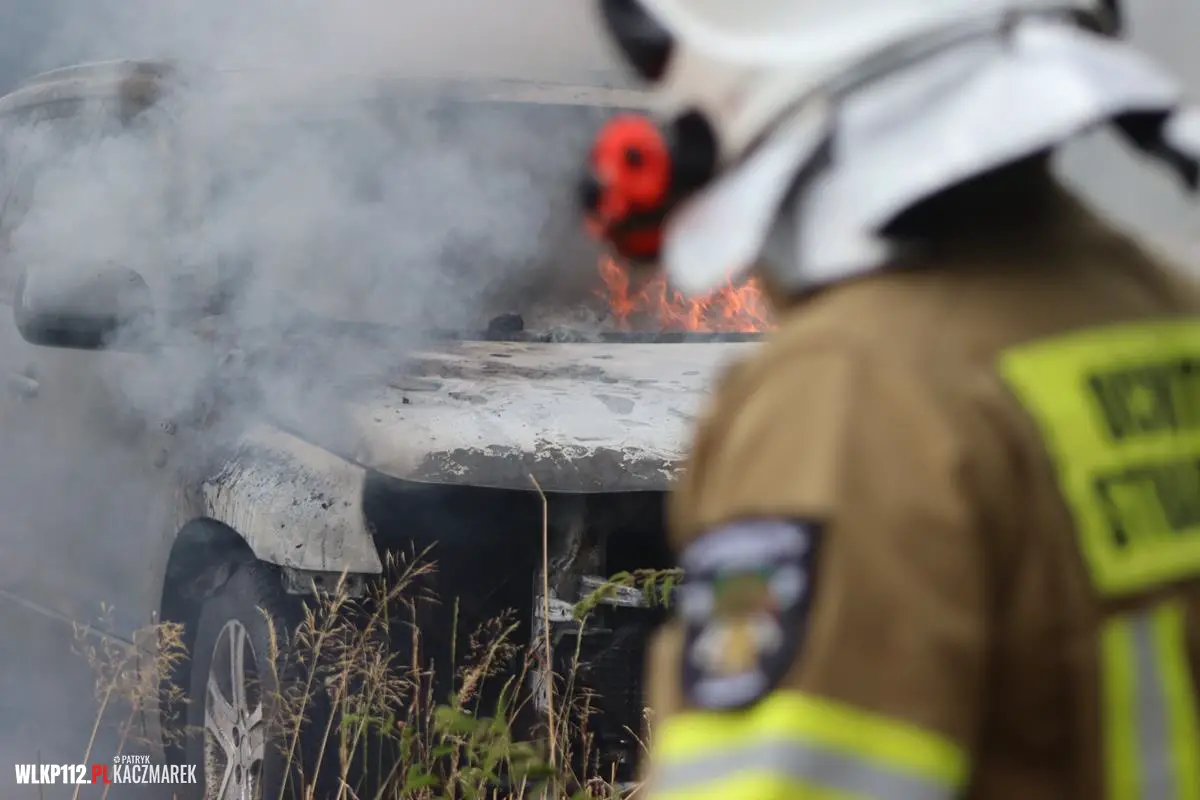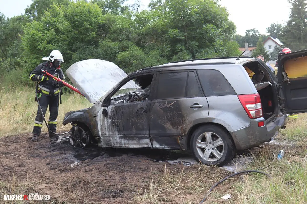 O sporym szczęściu może mówić kierowca osobowego Suzuki, który podczasz jazdy zapalił się. Kierowcy nic się nie stało.