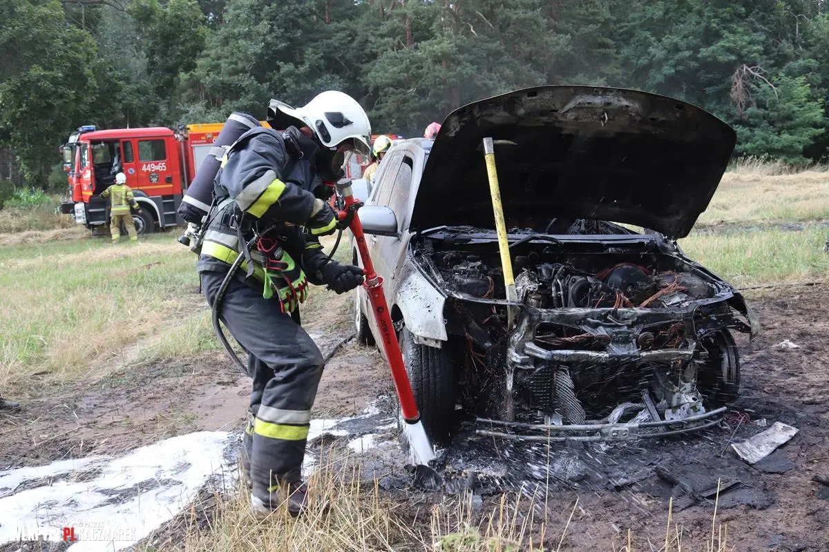 Jako pierwsi na miejscu pojawili się strażacy z Jabłonny, którzy od razu zabezpieczyli miejsce pożaru i przystąpili do akcji gaszenia auta za pomocą szybkiego natarcia. W między czasie przeprowadzono rozpoznanie i okazało się, że kierowcy nic się nie stało i mężczyzna podróżował sam. Ogień przedostał się również na pobliskie ściernisko, lecz został szybko ugaszony.