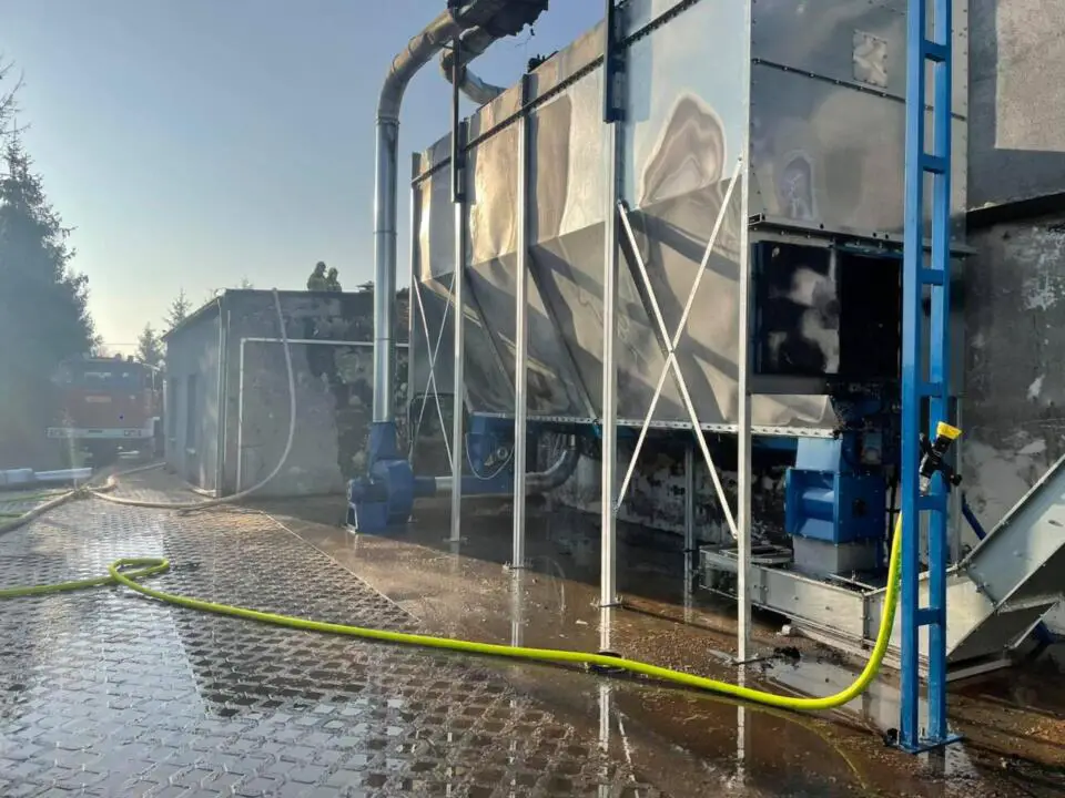 Strażacy po dojeździe na miejsce zdarzenia dokonali rozpoznania i potwierdzili treść zgłoszenia. Działania strażaków polegały na ugaszeniu pożaru trzema liniami gaśniczymi, opróżnieniu jednego z silosów oraz demontażu części rur instalacji odciągowej trocin, ponieważ tam również się paliło.