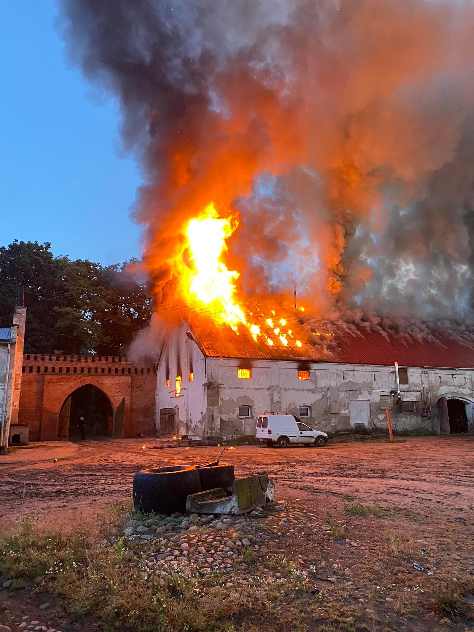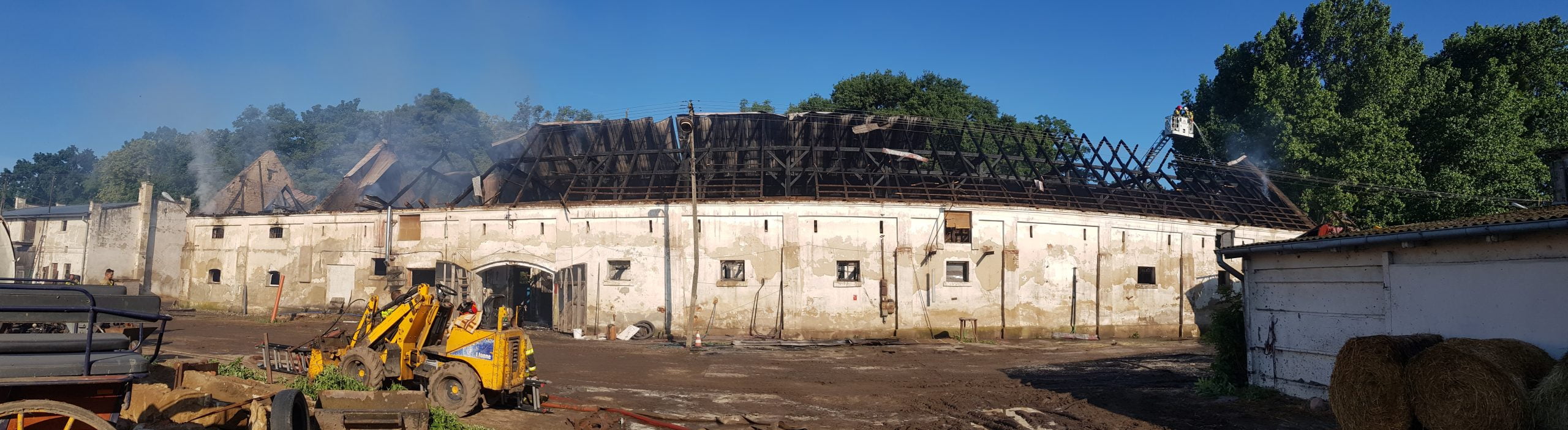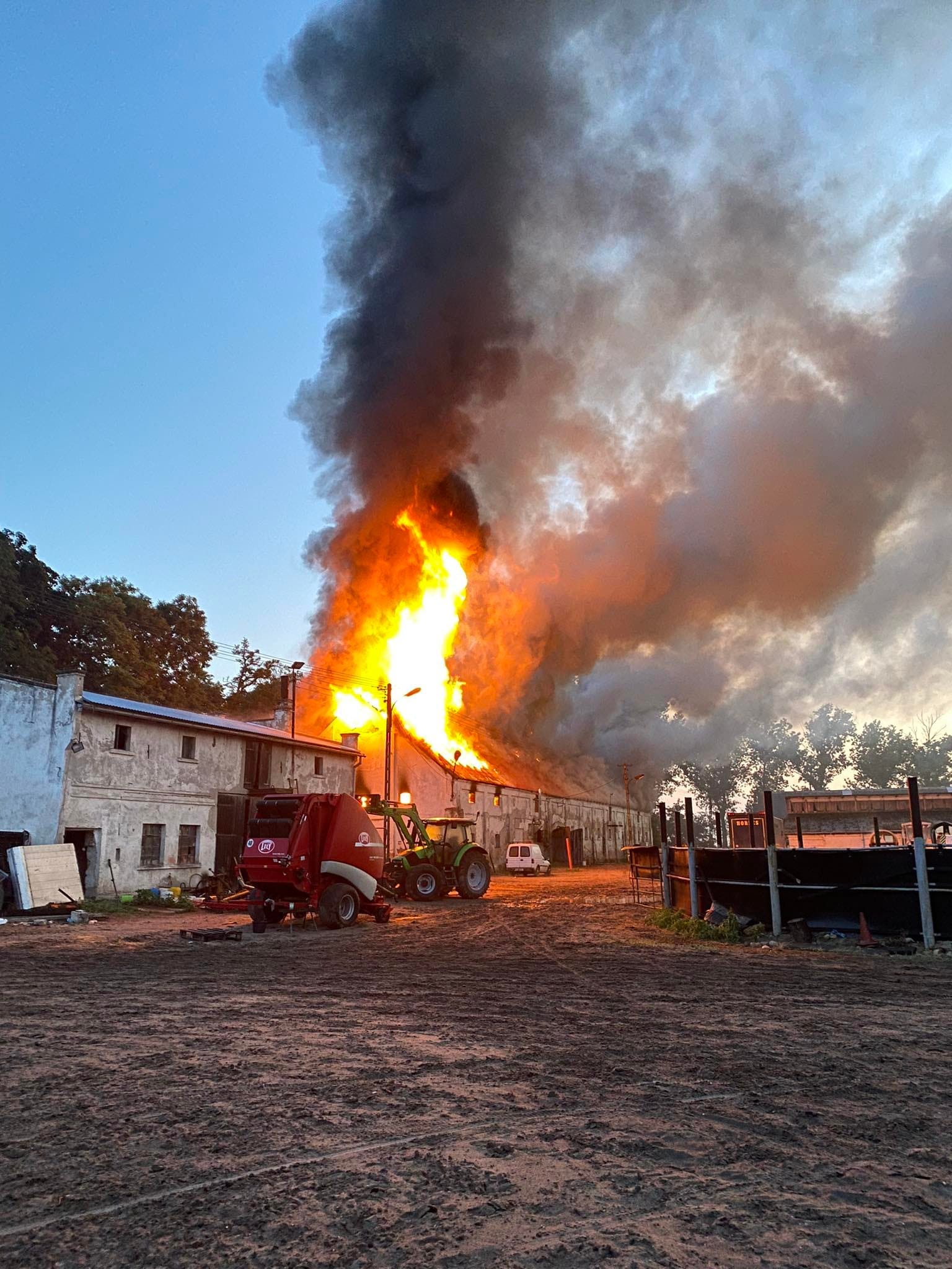 Po dojeździe na miejsce zdarzenia zastano dach stajni objęty pożarem w przedniej części budynku, w stajni znajdowały się konie (około 30 sztuk) oraz psy (5 sztuk) mówi dla portalu wlkp112.pl Łukasz Hajduk, rzecznik gostyńskich strażaków
