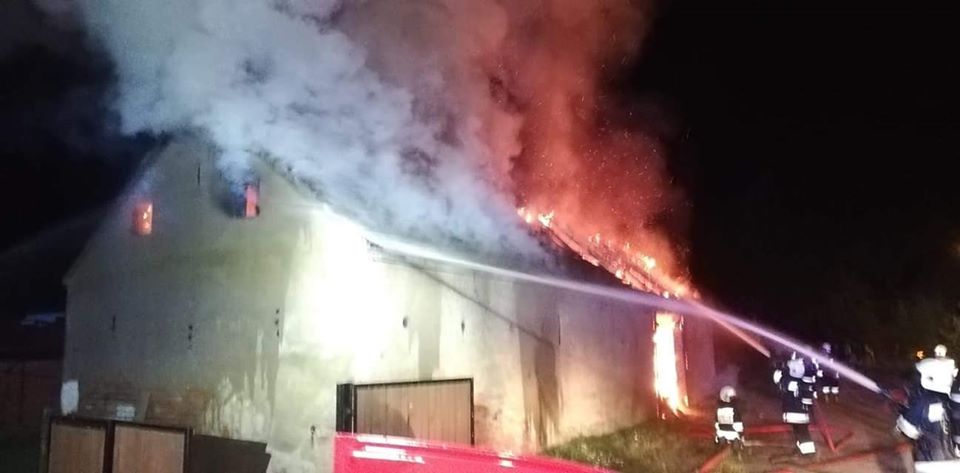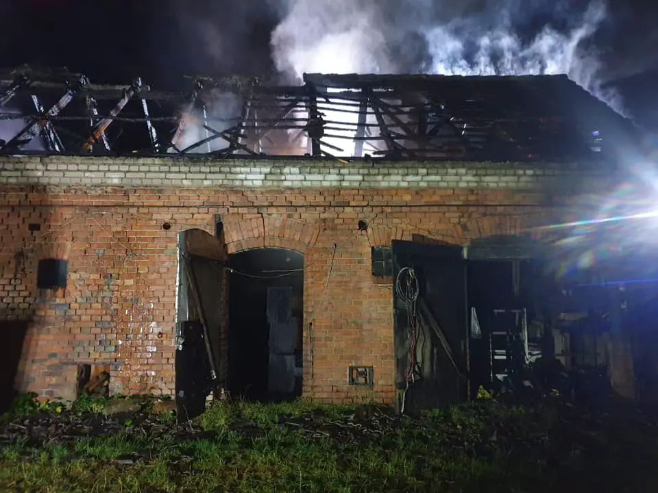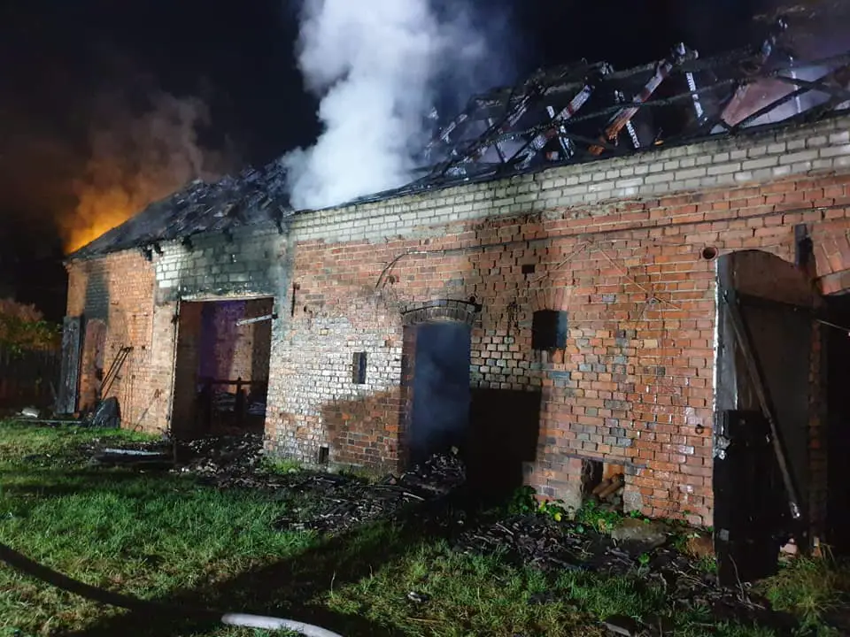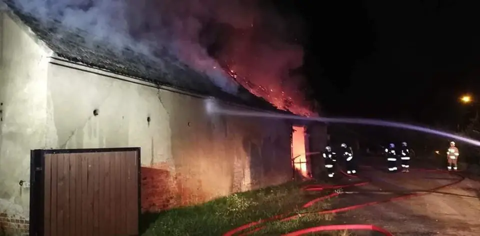 Po dojeździe na miejsce strażacy zastali budynek gospodarczy (murowaną stodołę) z drewnianą konstrukcją oraz dach pokryty dachówką, która była objęta w całości już ogniem.