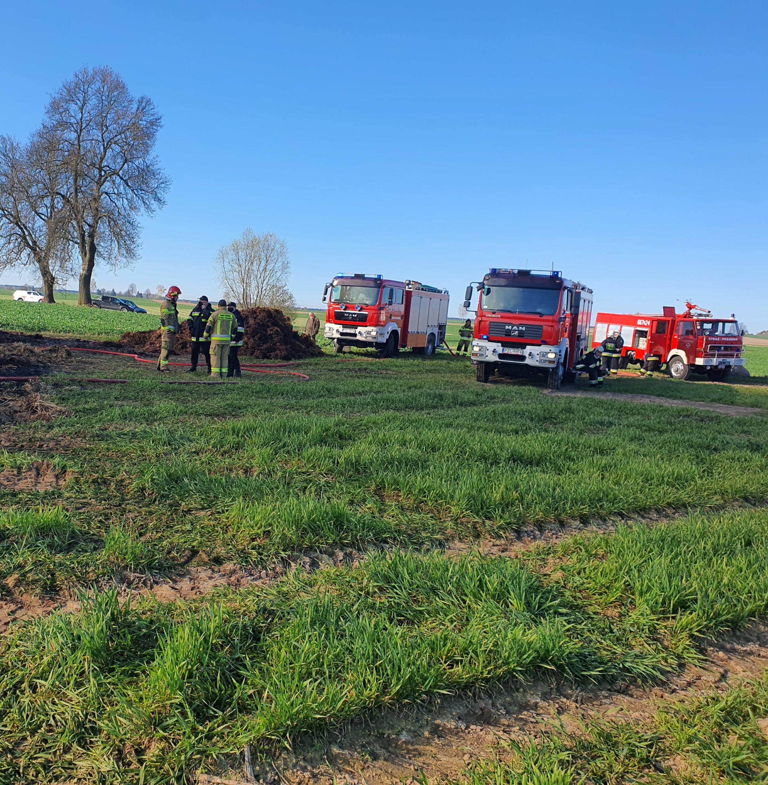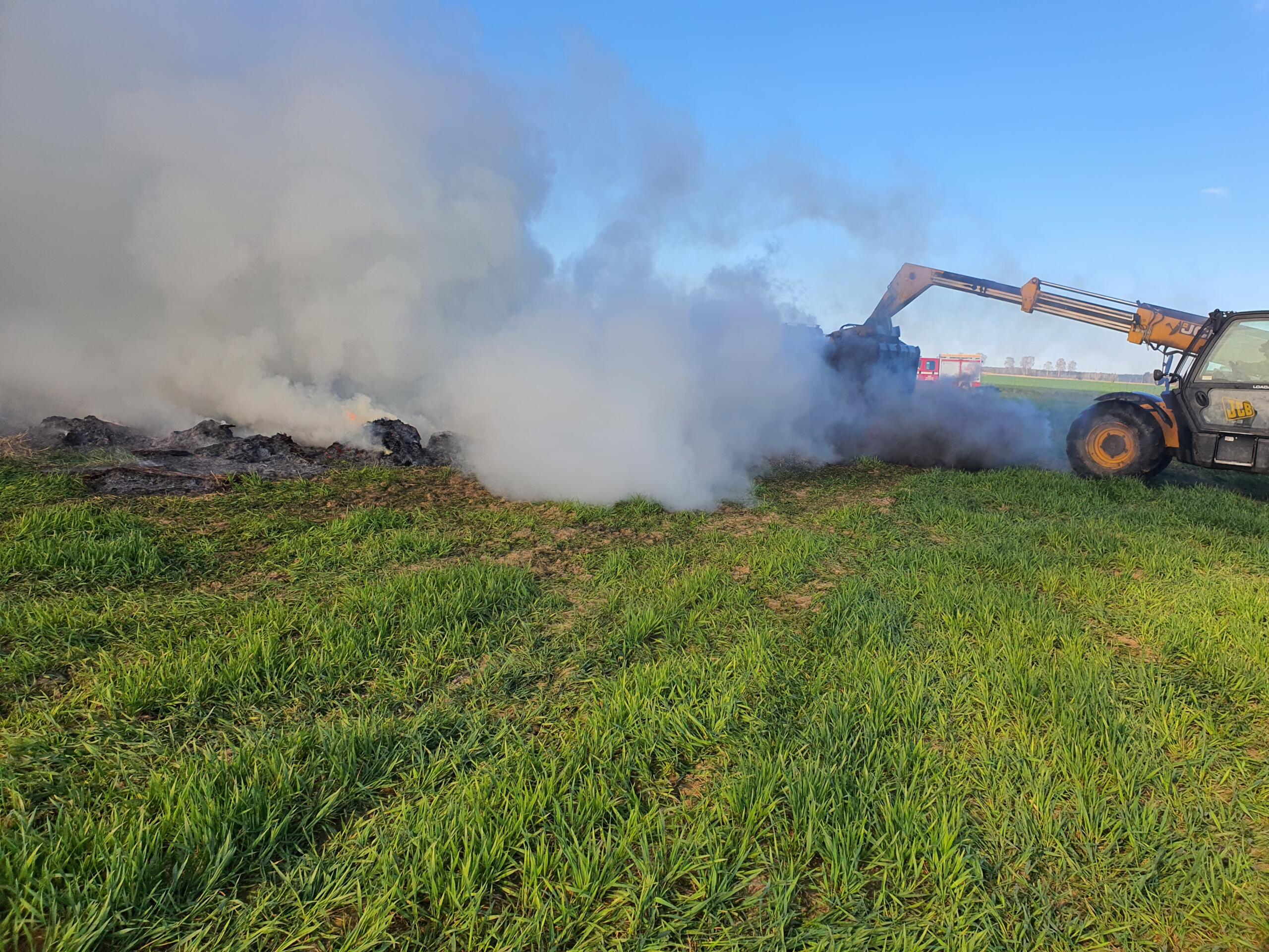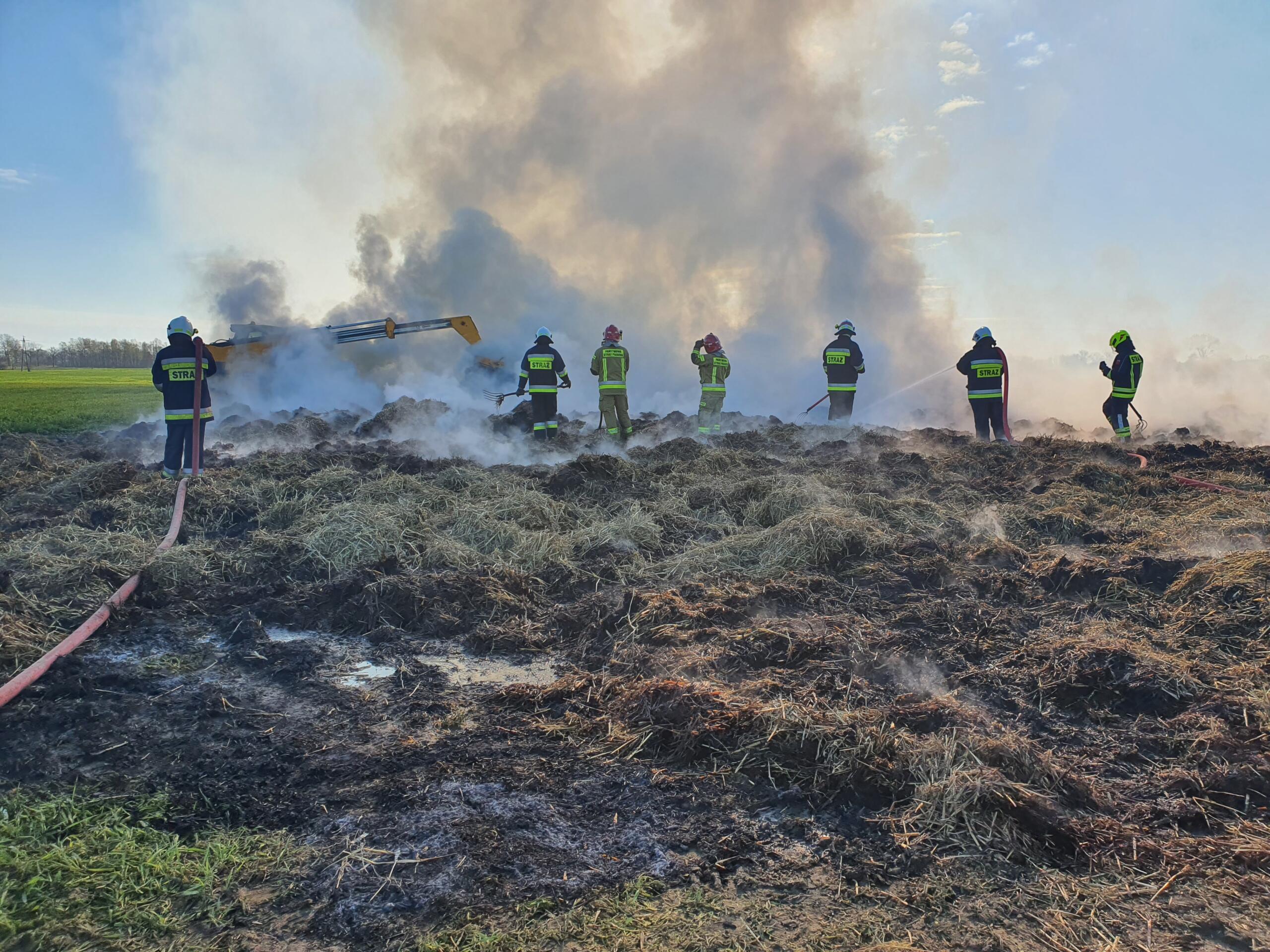 Na miejsce zadysponowano najbliższe jednostki OSP oraz strażaków z JRG w Złotowie. Po przybyciu we wskazane miejsce pierwszego zastępu potwierdzono zgłoszenie. Działania polegały na zabezpieczeniu terenu działań, a następnie przystąpiono do dogaszania stogu słomy. Do pomocy strażakom wkroczył ciężki sprzęt, którego zadaniem było rozgarnianie pogorzeliska.