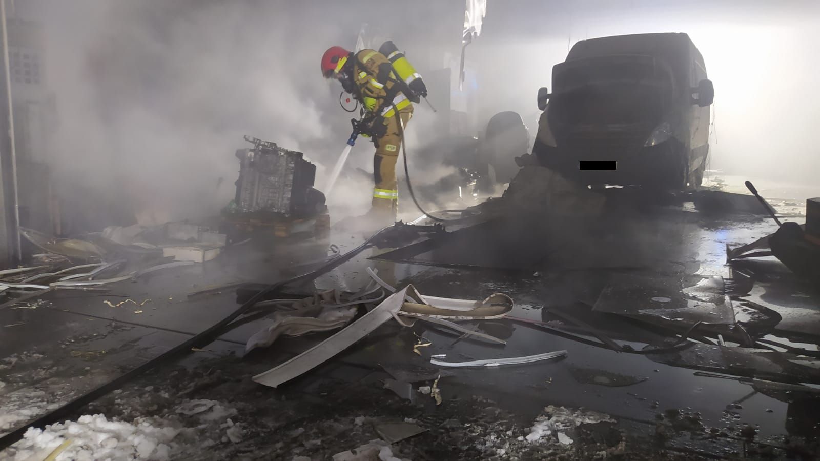 Strażacy po dotarciu pod wskazany adres zastali rozwijający się pożar hali warsztatowej. Zabezpieczeni ratownicy w aparaty Ochrony Dróg Oddechowych natychmiast przystąpili do gaszenia pożaru i ratowania mienia podając dwa prądy wody w natarciu.
